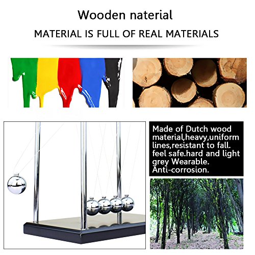 -. Feature : Premium Quality: Silver Ball Made of high quality Stainless Steel that will last for long. Base of the Newton Cradle Pressure Relive Toys: Non-toxic wooden.Size:9*7.6*9cm/3.5*3*3.5Inch. / Intelligence Development: Fine argument of Newton's law of motion and the starting point of physics.(Newton's Laws of Motion:)For every action there is an equal and opposite re-action.Inspired us to better understand the concept of conservation of momentum. / SWING TIME---The balls continue in perpetual motion FOR ONLY 15-25 SECONDS due to the resistance of the air and friction. We can not create a vacuum environment, so the balls will have some space when it is working, but it won't influence the effect of playing. / Versatile Use: great present for office decoration, your Boss, husband, wife, boyfriend, and/or girlfriend. Surely will be loved by kids under 21, grandsons, psychology classrooms, science, physics classrooms, and kids with ADHD. Also, it is great to relieve kids of stress and frustration. Its unique and simple design make it highlight over most office desk accessories. / Packing include:1x Newton Cradle .7-15 business days for delivery with free tracking number. 3 Months Refund and Resend Guarantee with no Hesitation. Before leaving a negative feedback, pls contact us via email in advance.