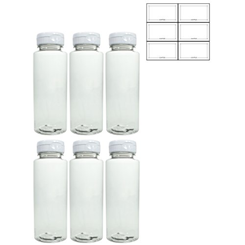 8 oz Honey and Syrup Bottle with White Flip Top Cap and Liner (6 PACK) - holds 12 oz honey by weight + Labels