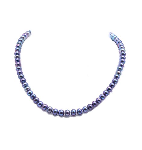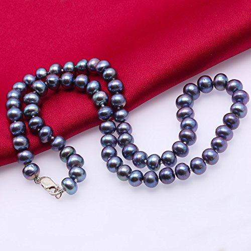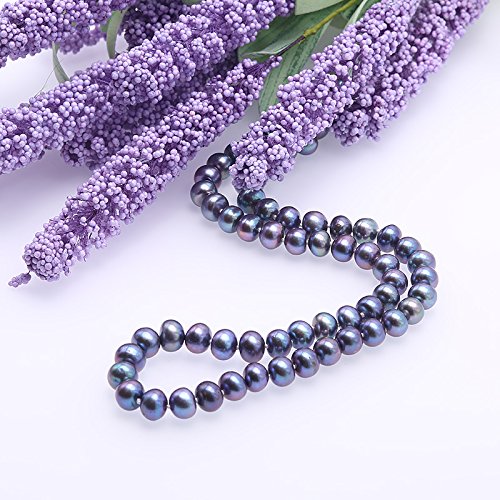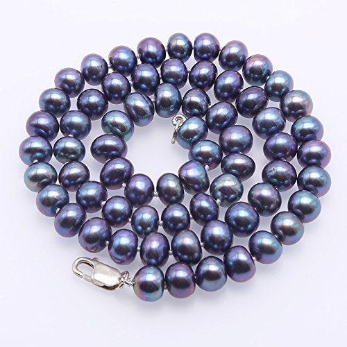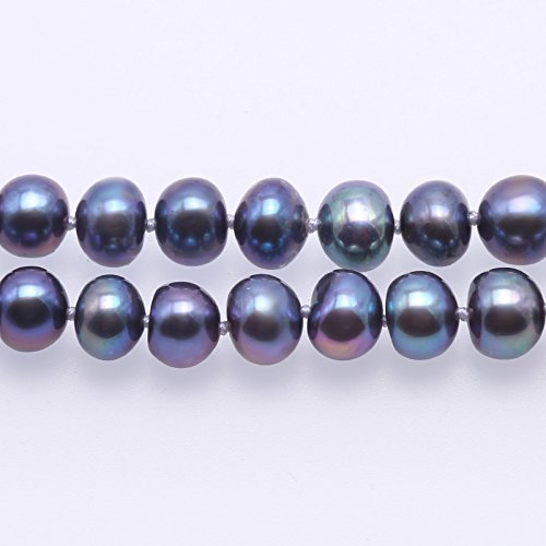 Description *Beautiful single-strand necklace made of 7-8mm black flat cultured freshwater pearls.