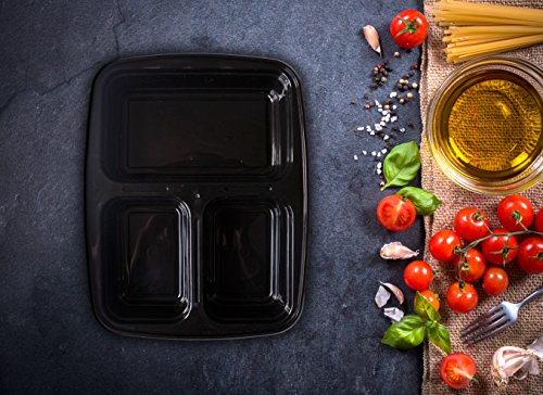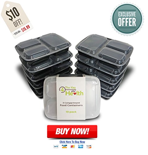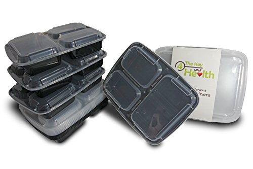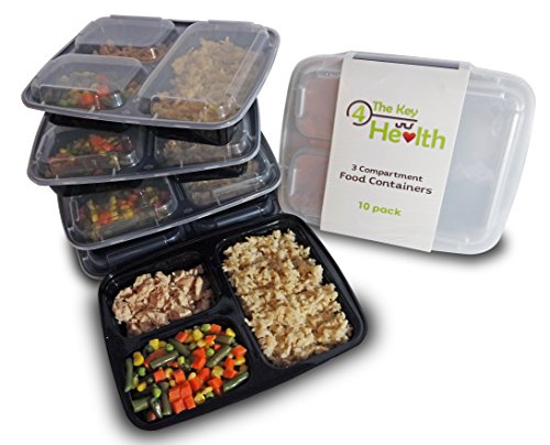 The Key 4 Health - 3 Compartment Food Containers - Reusable Containers with Lids - Stackable & Made with BPA-free Plastic - Perfect for Meal Prep/Diet - 10 Bento Box/Lunch Containers (10 Pack)
