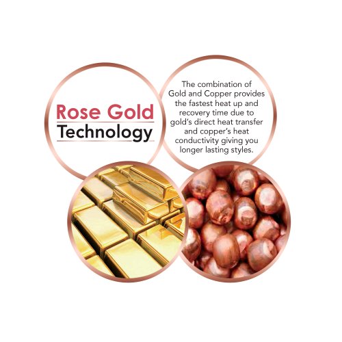 Rose Gold Technology a combination of gold and copper to give the ultimate styling surface to create longer lasting styles.