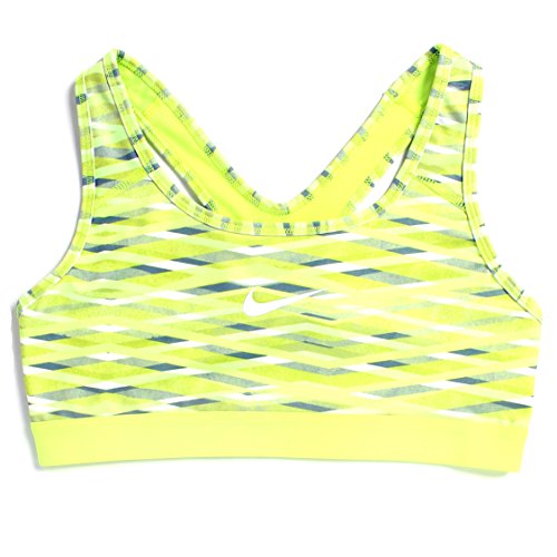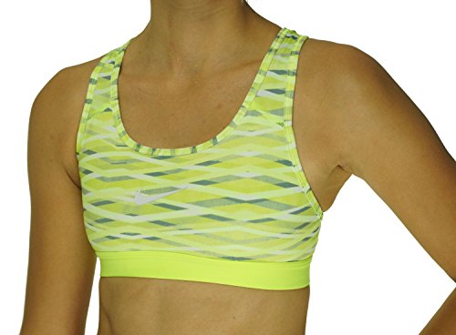 Nike Women's Pro Classic Criss Cross Printed Sports Bra (Medium, Lime Green/Grey/White)