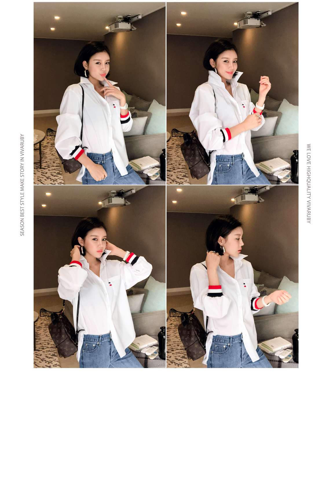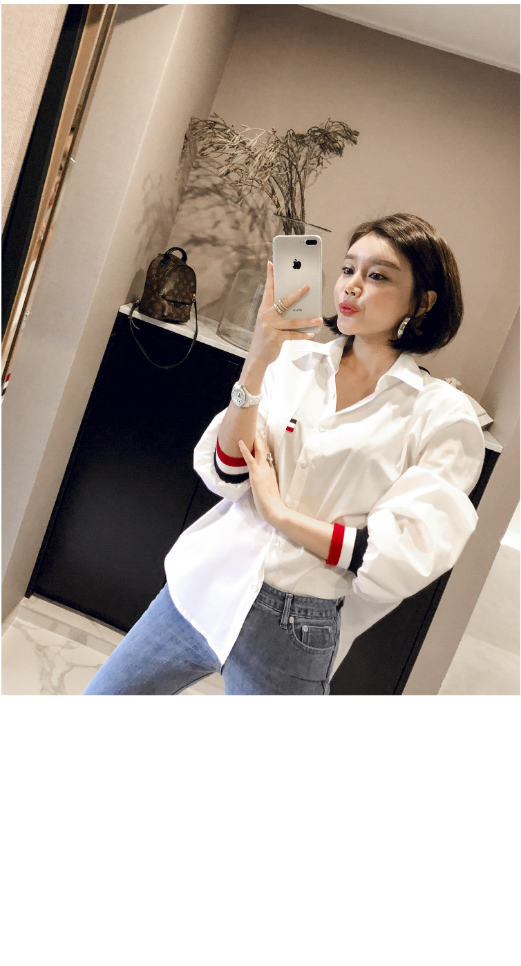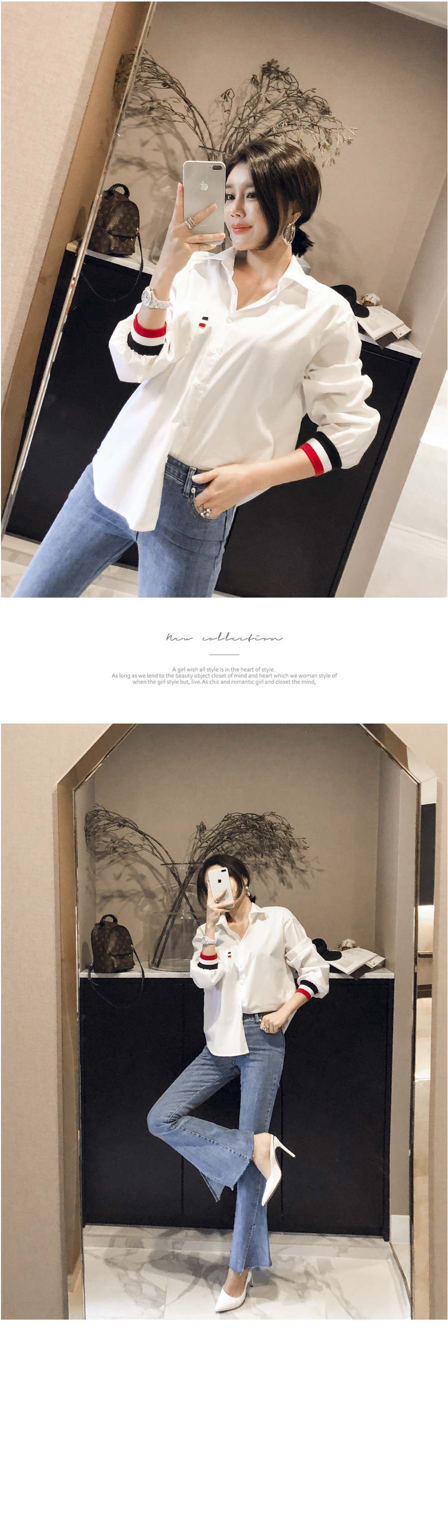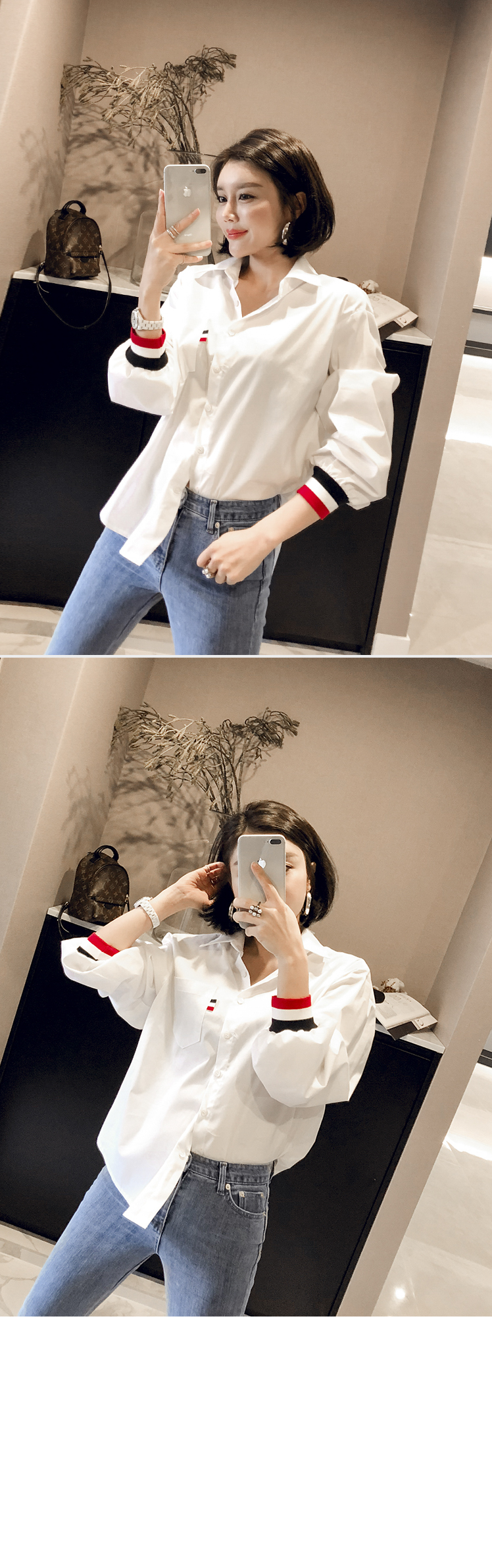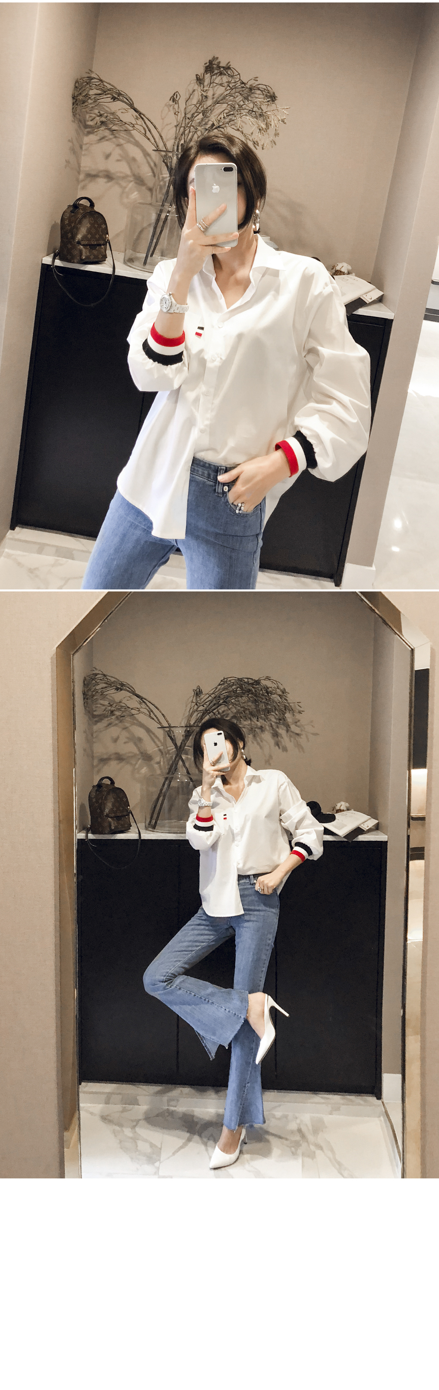 、同じカラー感の小売バンドディテールがシャツとジャンパーを