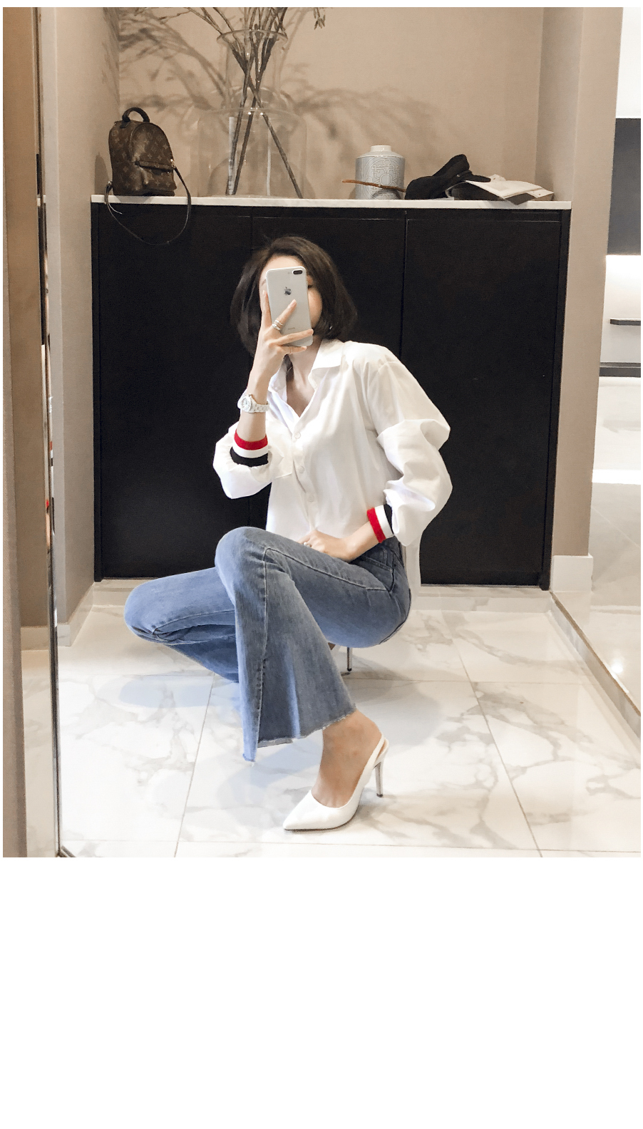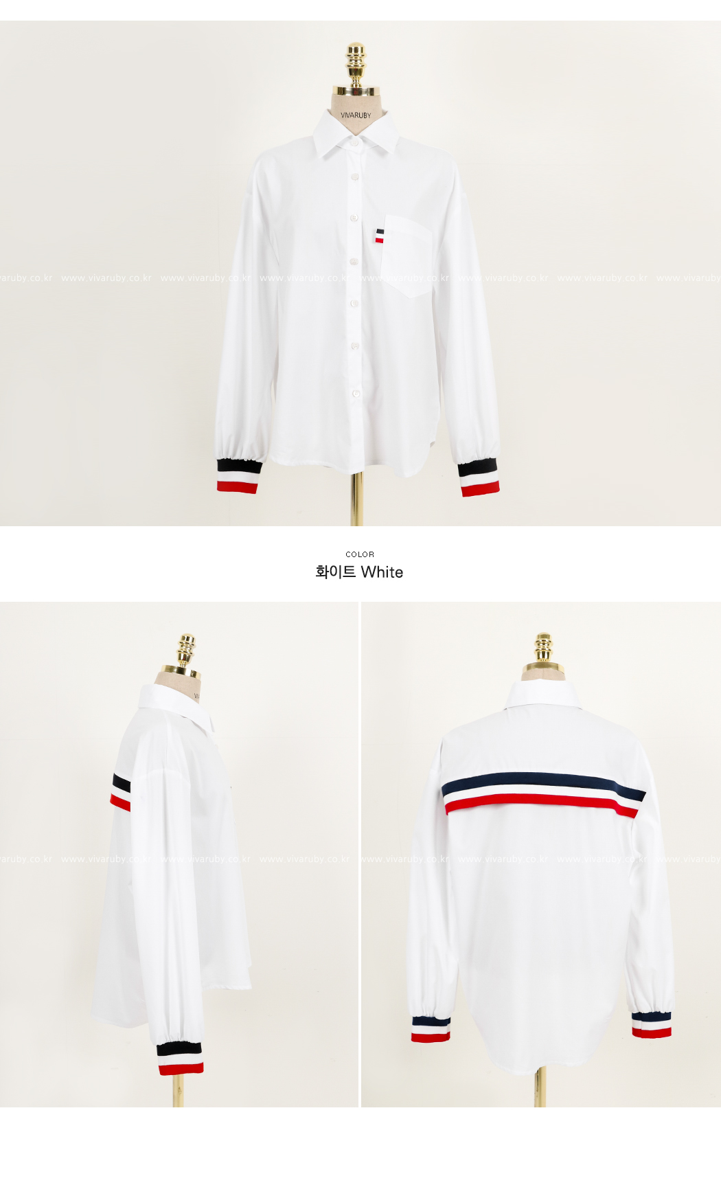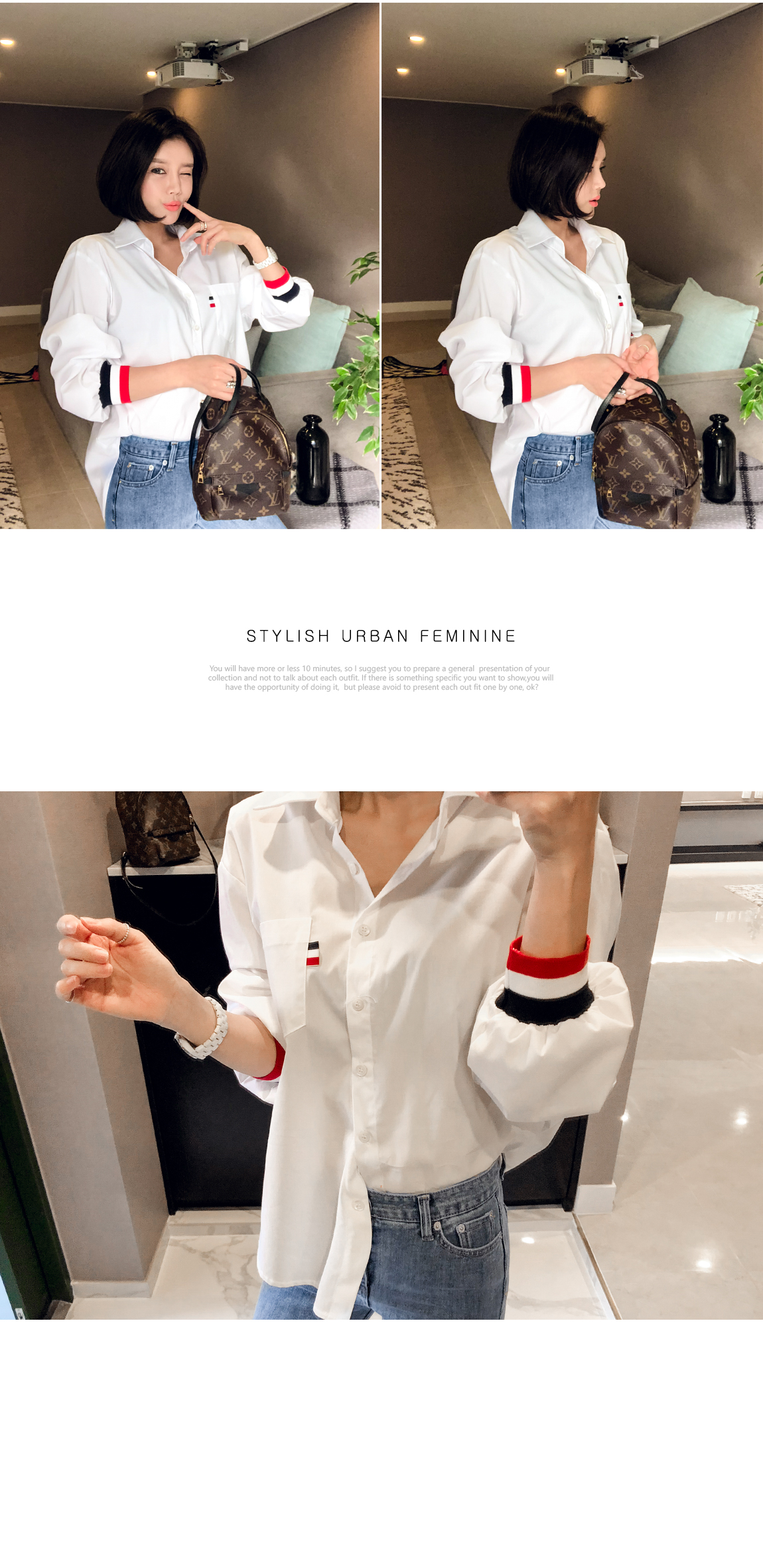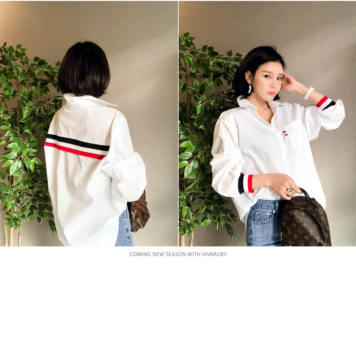 、同じカラー感の小売バンドディテールがシャツとジャンパーを