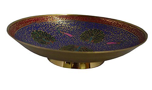 Zap Impex Gold Plated Brass Decorative Round dry Fruit Bowl - Size- 8" Beautiful blue Color Peacock design Kitchenware Gift