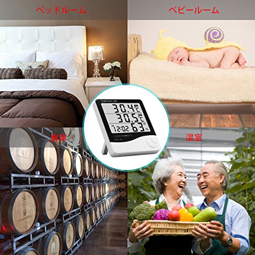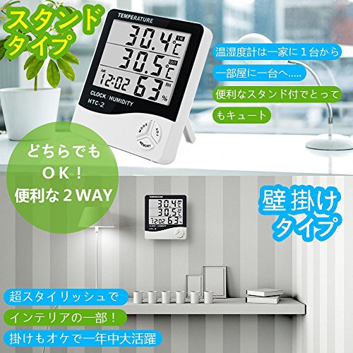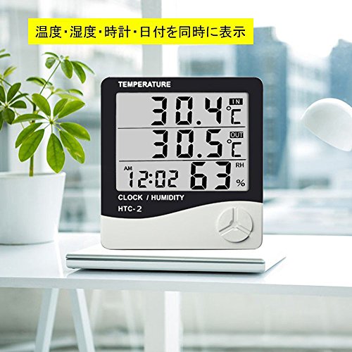 -. Title : デジタル温湿度計 室内温度計 置き掛け両用 時計 日本語説明書付き ホワイトHTC-2