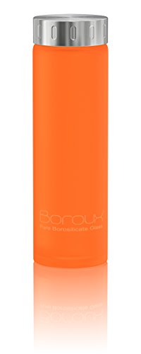 -. Title : Boroux® Spectrum 16.9 oz pure Borosilicate glass water bottle with exclusive sleeve-less protection in 10 colors from Silikote, a silicone bonded directly to the glass
