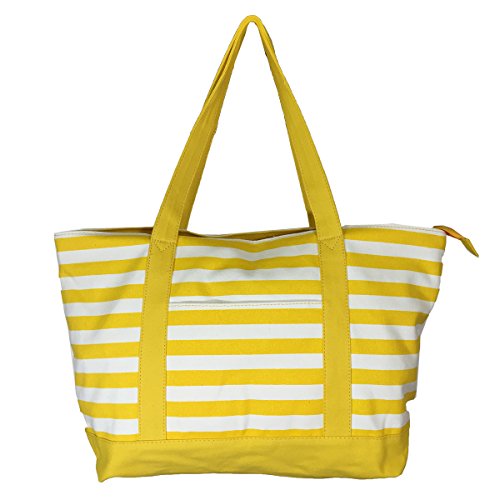 -. Brand : Ever Moda -. Feature : This oversized tote bag is built with sturdy, 100% cotton canvas. / Secure your contents with zipper closure on the top inside / Matched color Polka Dot prints liner with 2 interior wall pockets for easy access to keys, phone, etc / Easy carry design, 11" reinforced shoulder drop ensures a comfortable fit / 22" wide, 13" height (24" with handle), 8" depth, inside height 12" from zipper closure -. ProductGroup : Apparel -. ProductTypeName : LAGE -. Title : Fashion Pattern Prints Zippered X-Large Roomy Canvas Tote Bag EM3020