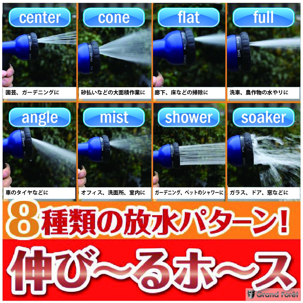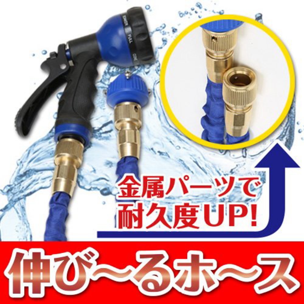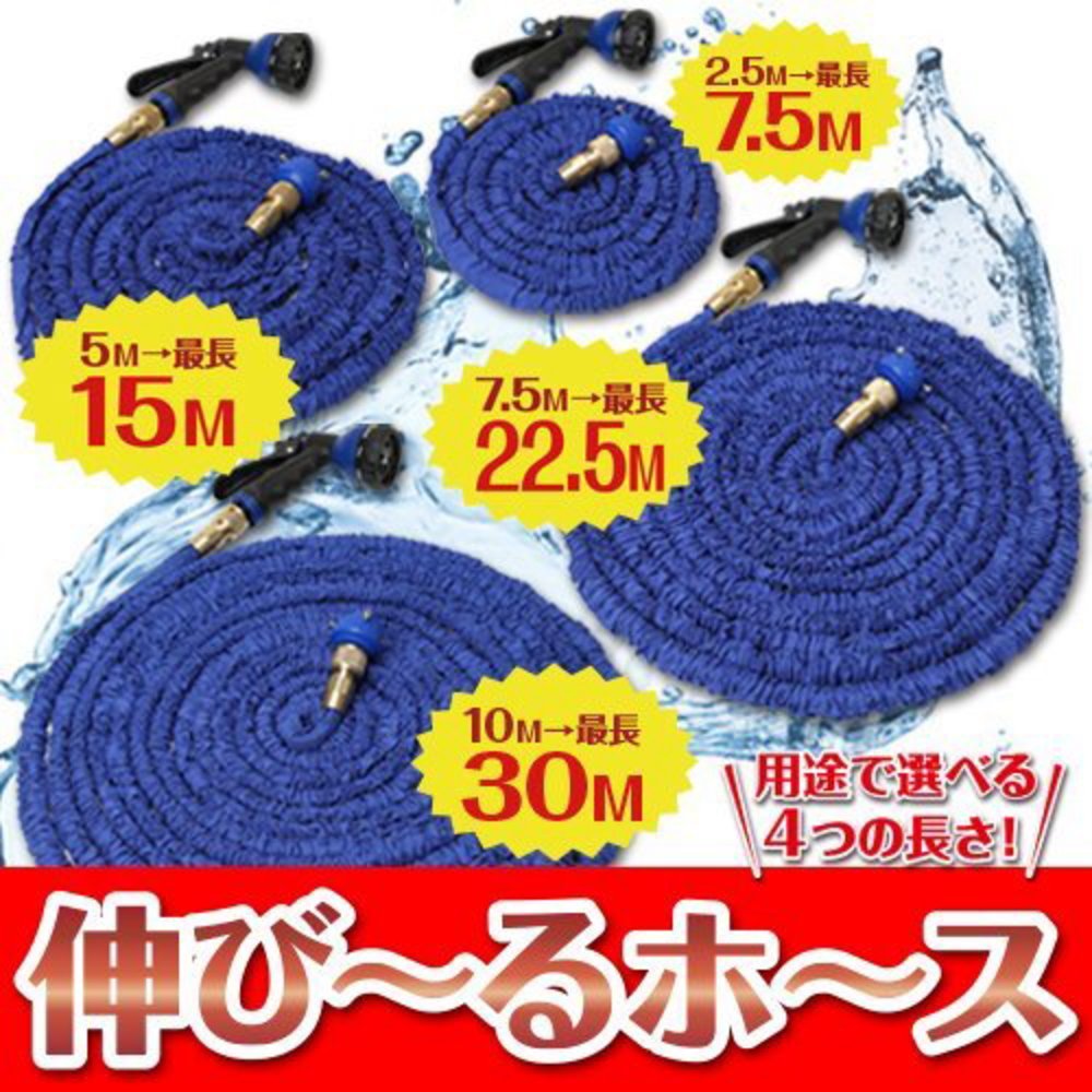 A telescopic hose that stretches about 3 times with water pressure at the time of water discharge!