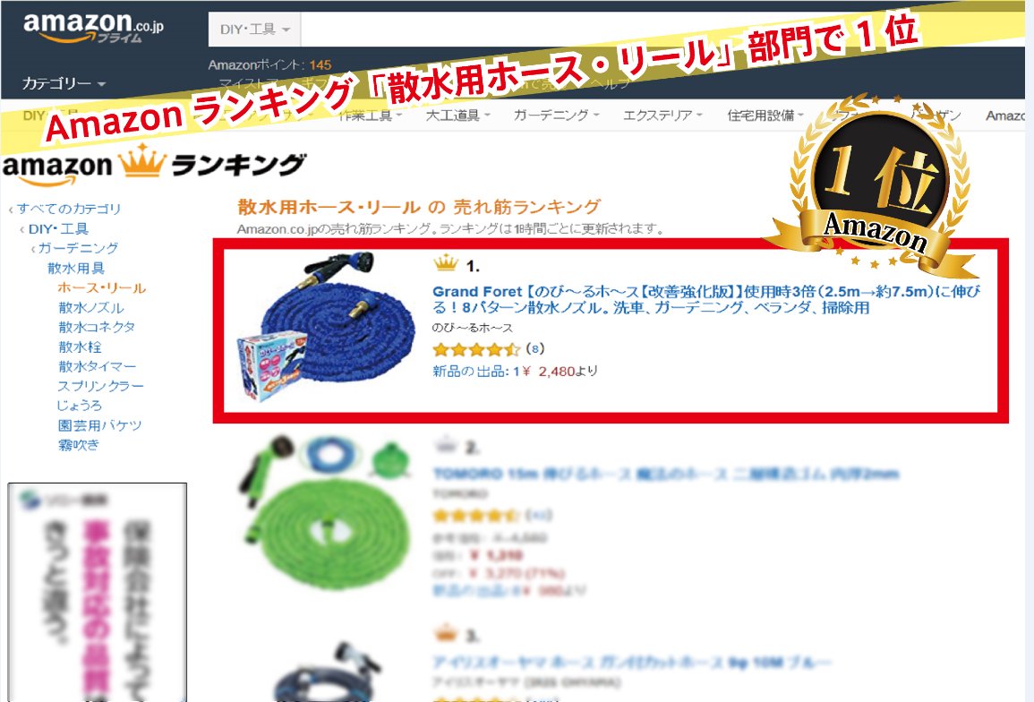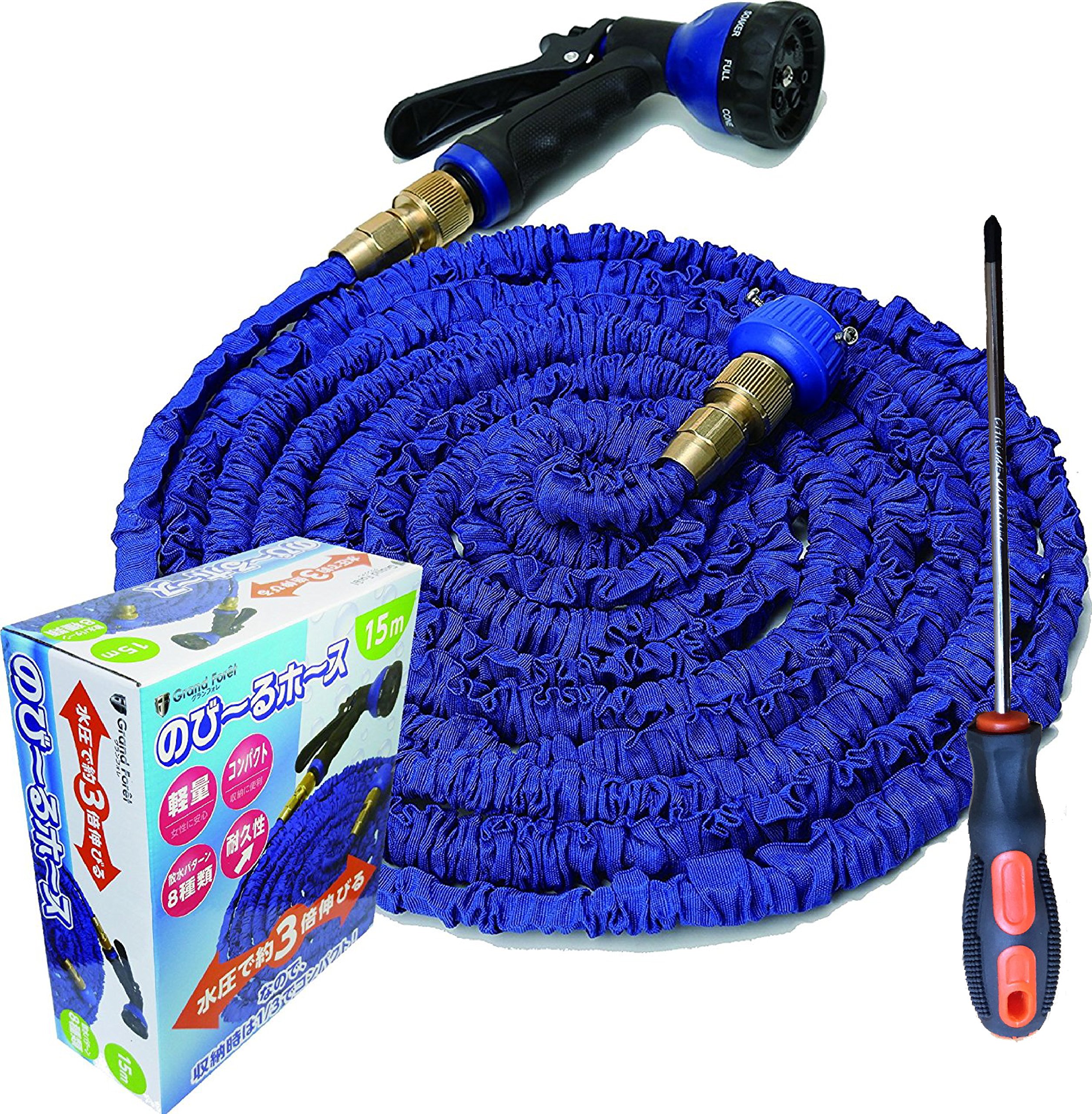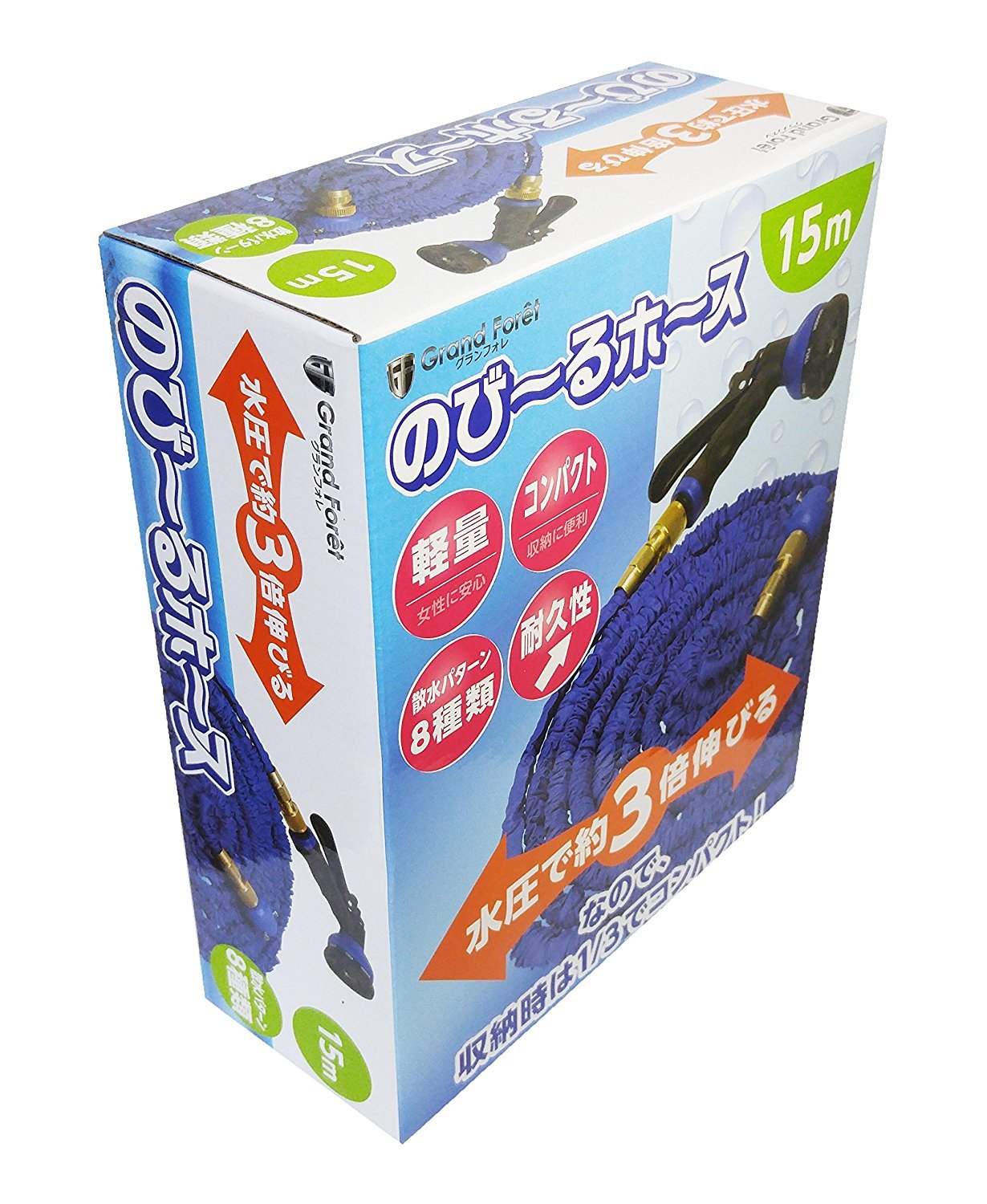 A telescopic hose that stretches about 3 times with water pressure at the time of water discharge!