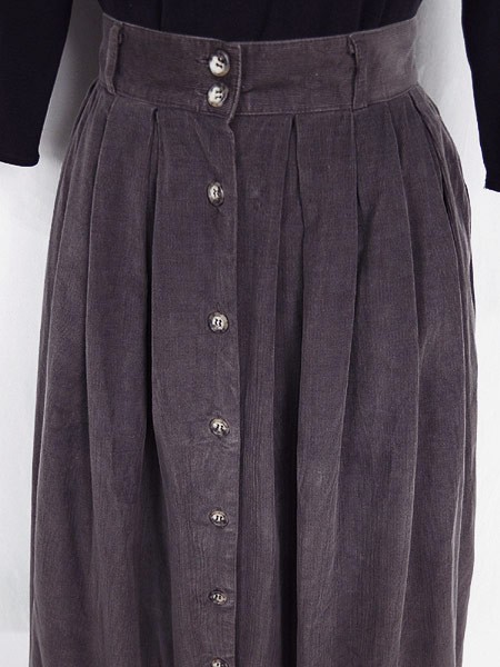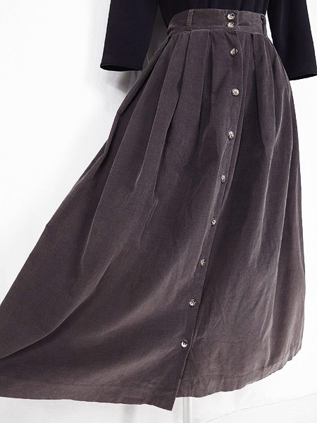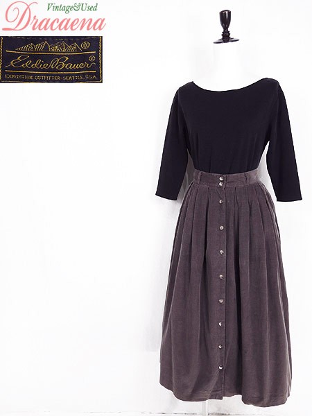 Ladies ブランドEddieBauer エディーバウアー カラー茶 メール便不可 コンディション★★★ 素材コットン100% 表記サイズ10 スタッフコメントレトロな雰囲気のタック入りコーデュロイスカート。フロントボタン、前開きのデザイン。裏地なし、JAPAN製。前立て、右裾にヨゴレあり。 実寸サイズ 着丈 81 cm ウエスト 27 インチ( 69 cm) ※ウエスト・ヒップ以外は平置き採寸