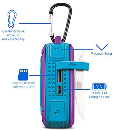 -. Title : Aduro® AquaSound WSP60, Shock / Splash (IPX4) / Dirt / Snow proof, Wireless Speaker for Smartphones & all Bluetooth Media Devices w/ Detachable Suction Cup & Carabiner Keychain Hook - Perfect for Shower / Pool / Outdoor Adventure