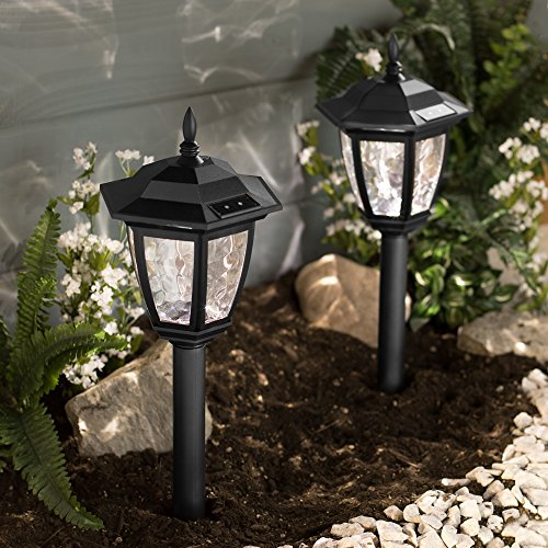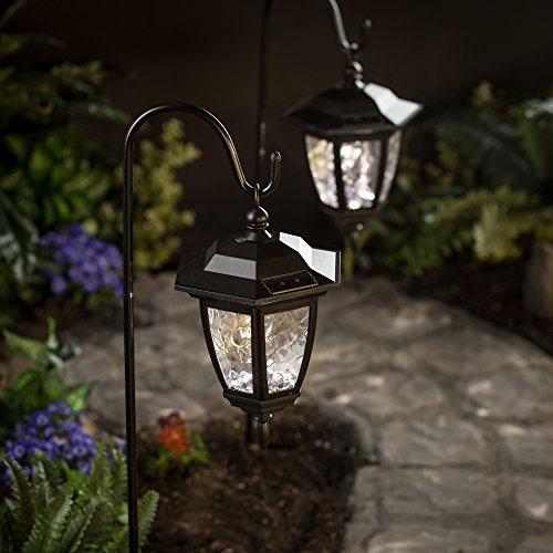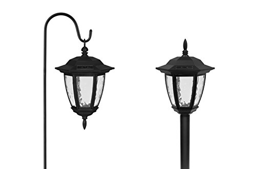 - Create an intimate vibe by hanging it or stake it for a more traditional, grounded feel. Comes in a set of 2, black finish, and plastic body and lens.
