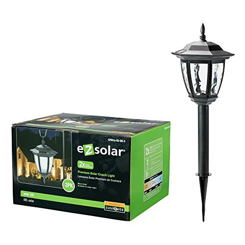 ezsolar Dual Use Classic Coach Light (Set of 2) Model #: CPM1a-R2- BK-2, Powered by SunPower Solar Panels, Pathway Lights, Outdoor Lighting, 1 AA Battery Included, 1 Year Warranty.