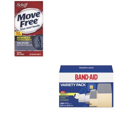 Studio : Reckitt Benckiser Publisher : Reckitt Benckiser Binding : Office Product Product Description strongMOV11835/strongBR/Reckitt Benckiser Advanced Plus MSM and Vitamin D3 Total Joint Health TabletBR/Advanced four formula Glucosamine, Chondroitin, Uniflex, and Joint Fluid, plus we add MSM and Vitamin D. Triple strength formula means you have to take just two tablets per day. Contains: Vitamin D3 2000 IU Glucosamine Hydrochloride 1500 mg MSM 750 mg Uniflex 216 mg Chondroitin Sulfate 200 mg Joint Fluid 3.3 mg Description: 80 Tablets.BR/BR/strongJOJ4711/strongBR/Band-aid Sheer/Wet Adhesive BandagesBR/Sheer/wet bandages provide breathable protection. Attaches with adhesive. Packaged for individual use and to replenish first aid stations and kits. Bandages Type: Standard Mounting: With Adhesive. 0
