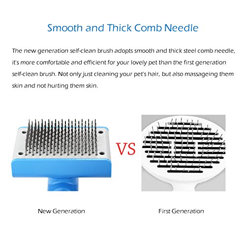 2. Solofish Self Cleaning Slicker Brush adopt 137pcs smooth and thick steel needle, it's more comfortable and efficient for your lovely pet daily use. Not only just cleaning your pet's hair, but also massageing them skin, leaves your pet's coat soft and shiny and increases them blood circulation.