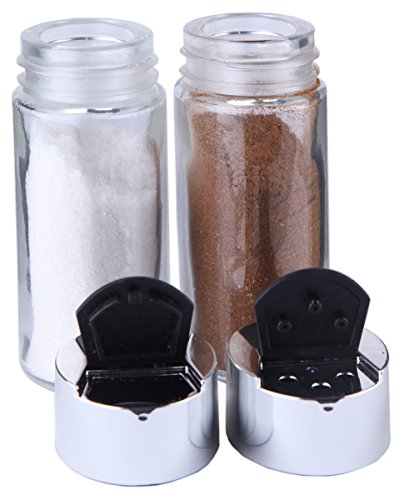 Herb and Spice Container Salt and Pepper Shakers Kitchen Spice Storage Jars Bottles Containers Circular Modern 2 Pc Set Elegant Designed High Grade Glass for Spice Storage 3 Oz - 2.5 x 4 inches