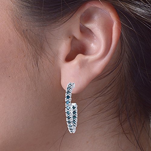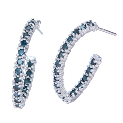 Sterling Silver Blue Diamond Hoop Earrings (1 CT). The Blue Diamonds are Irradiated. The minimum total diamond carat weight is 0.96 CT. This product comes with a 90 day seller warranty.