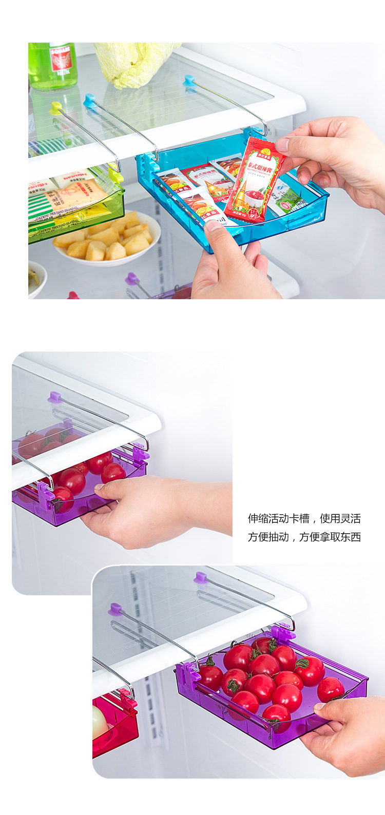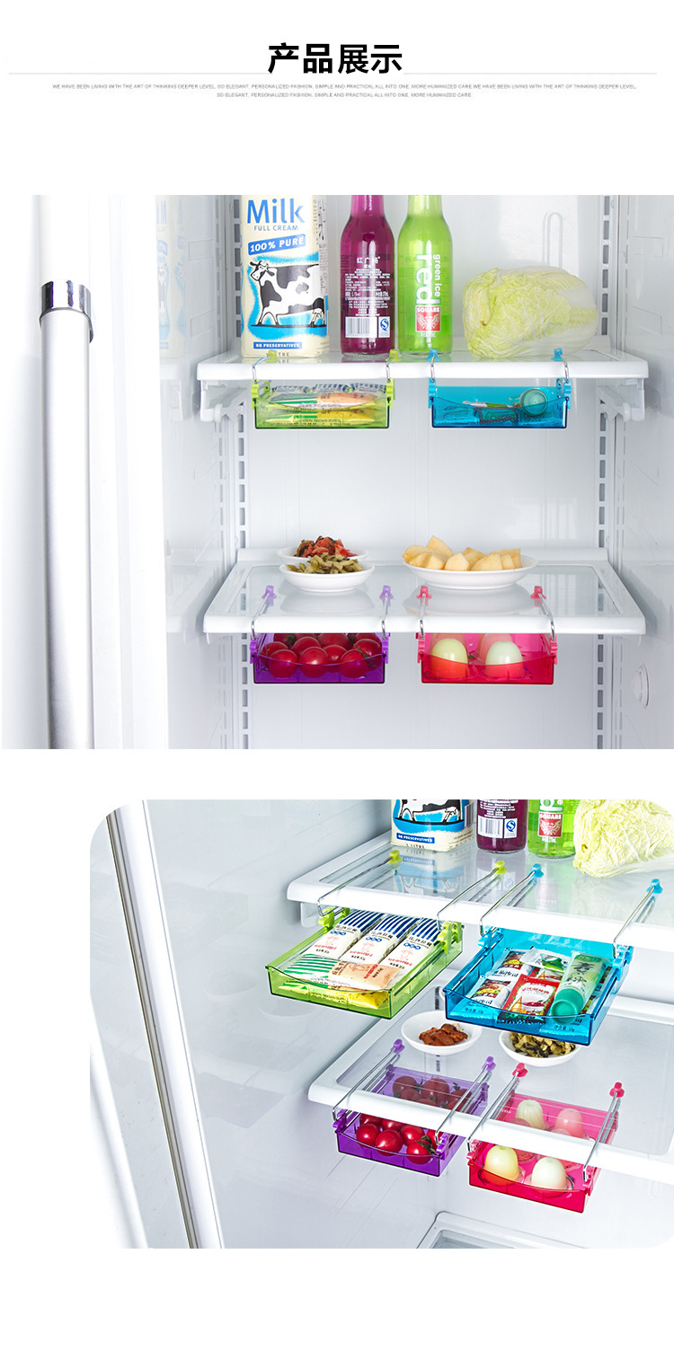 Slide design, fridge storage drawer