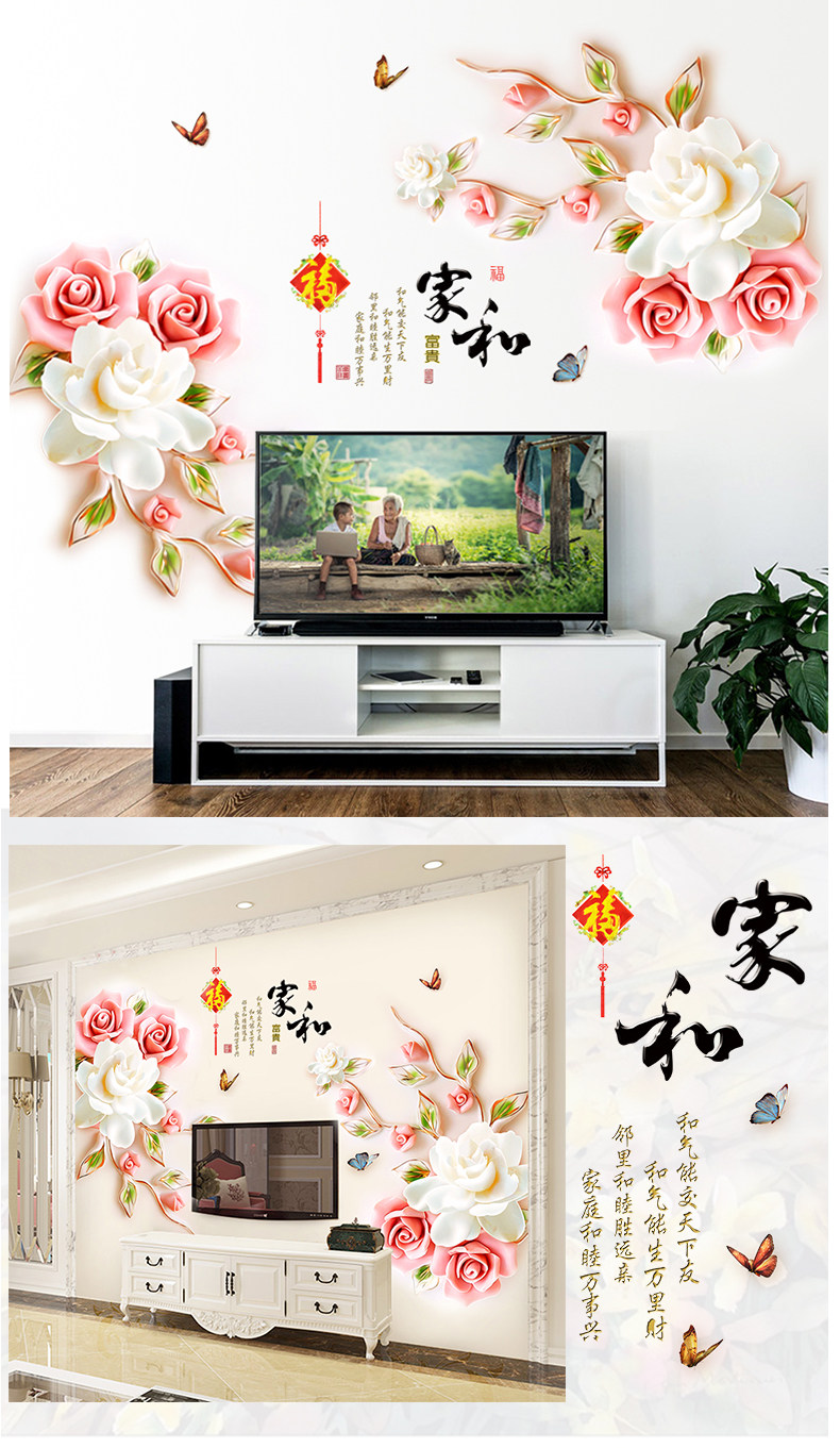 卧室房间温馨家和墙贴壁纸客厅电视背景墙壁装饰贴纸墙纸自粘贴画