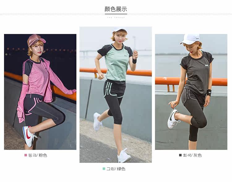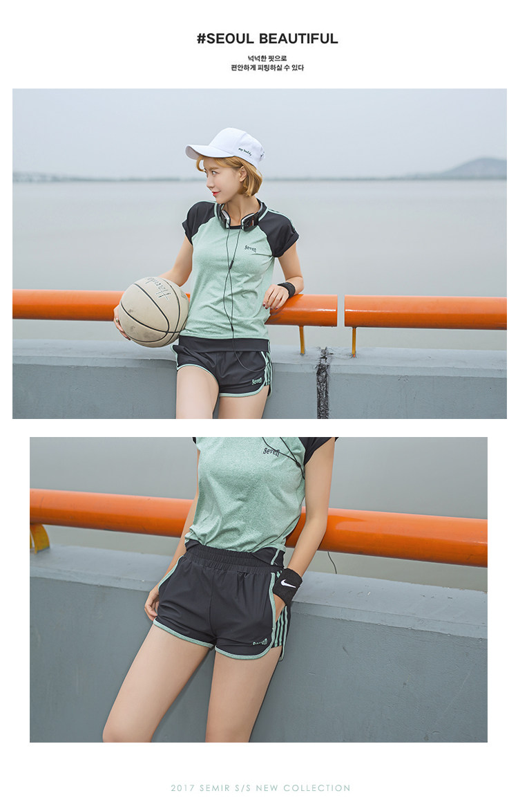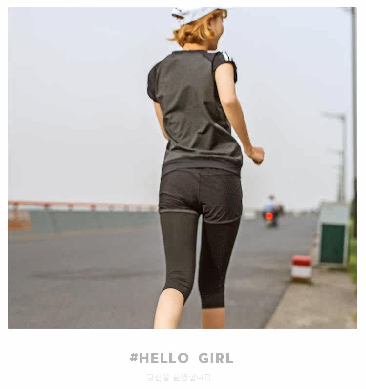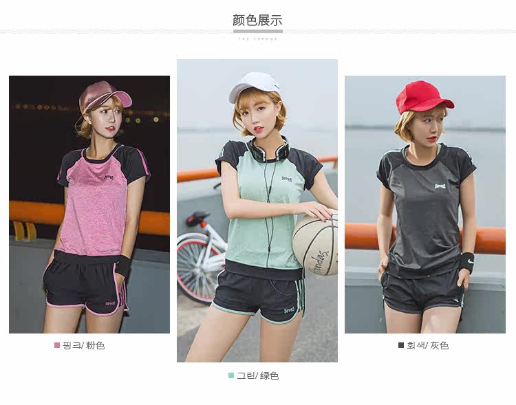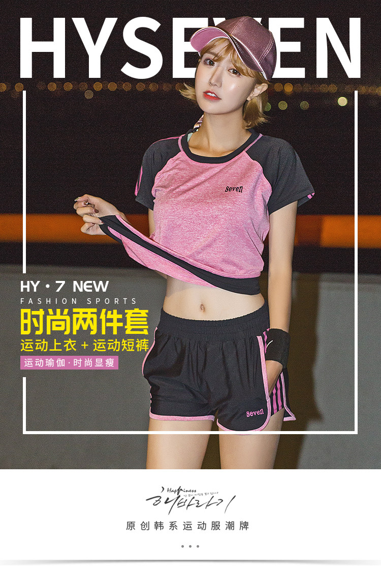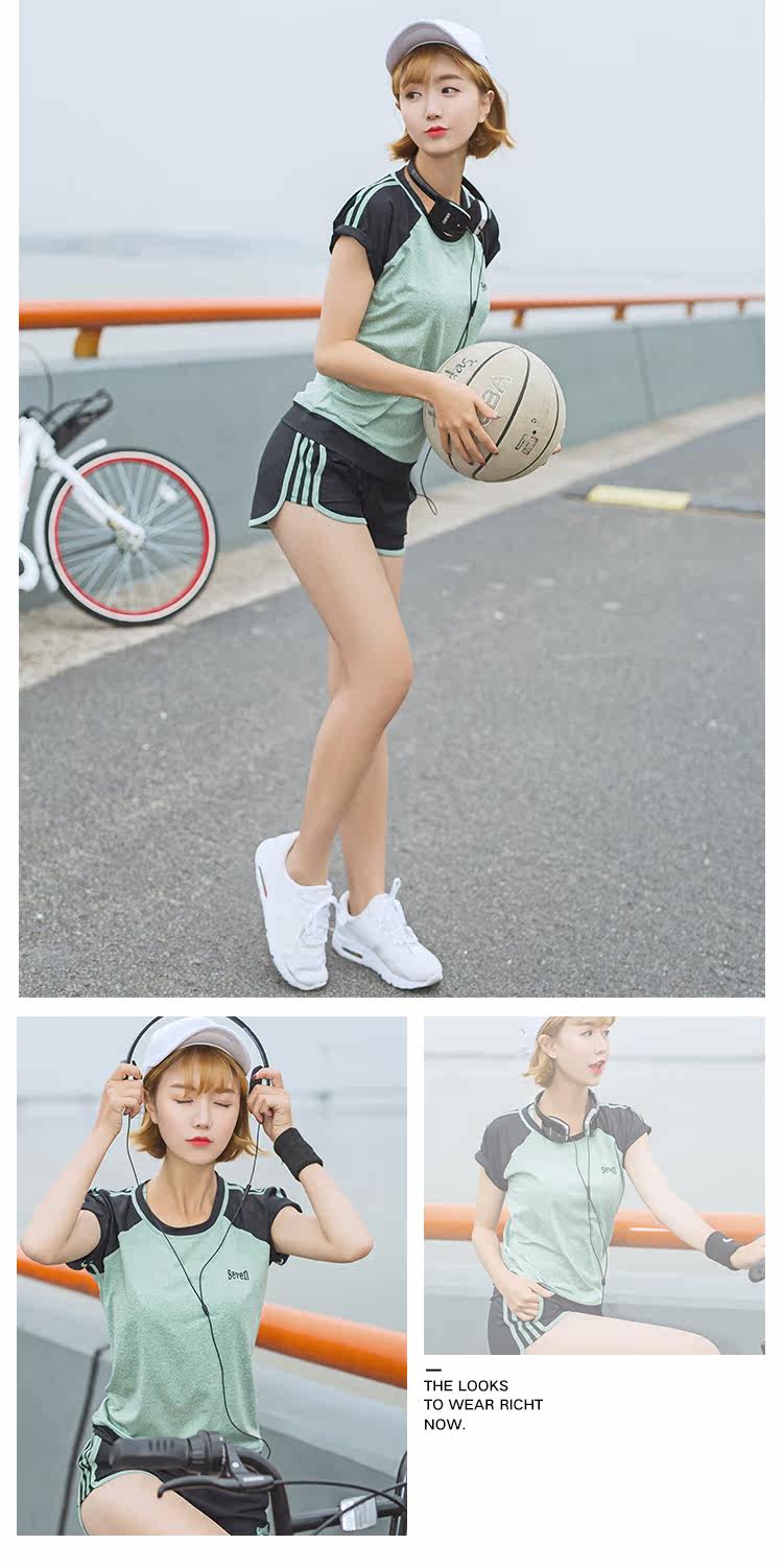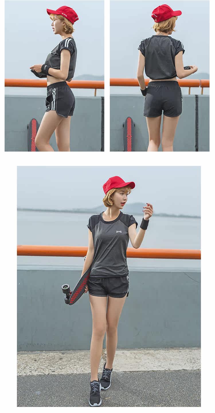 夏季瑜伽服健身服女宽松短袖速干衣健身房跑步运动服短裤三件套装