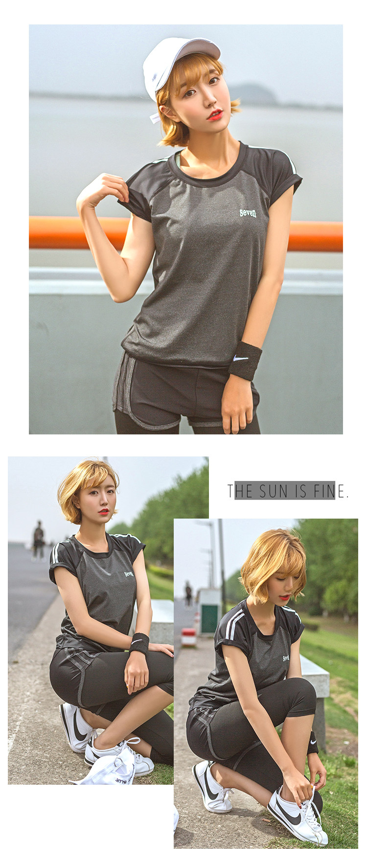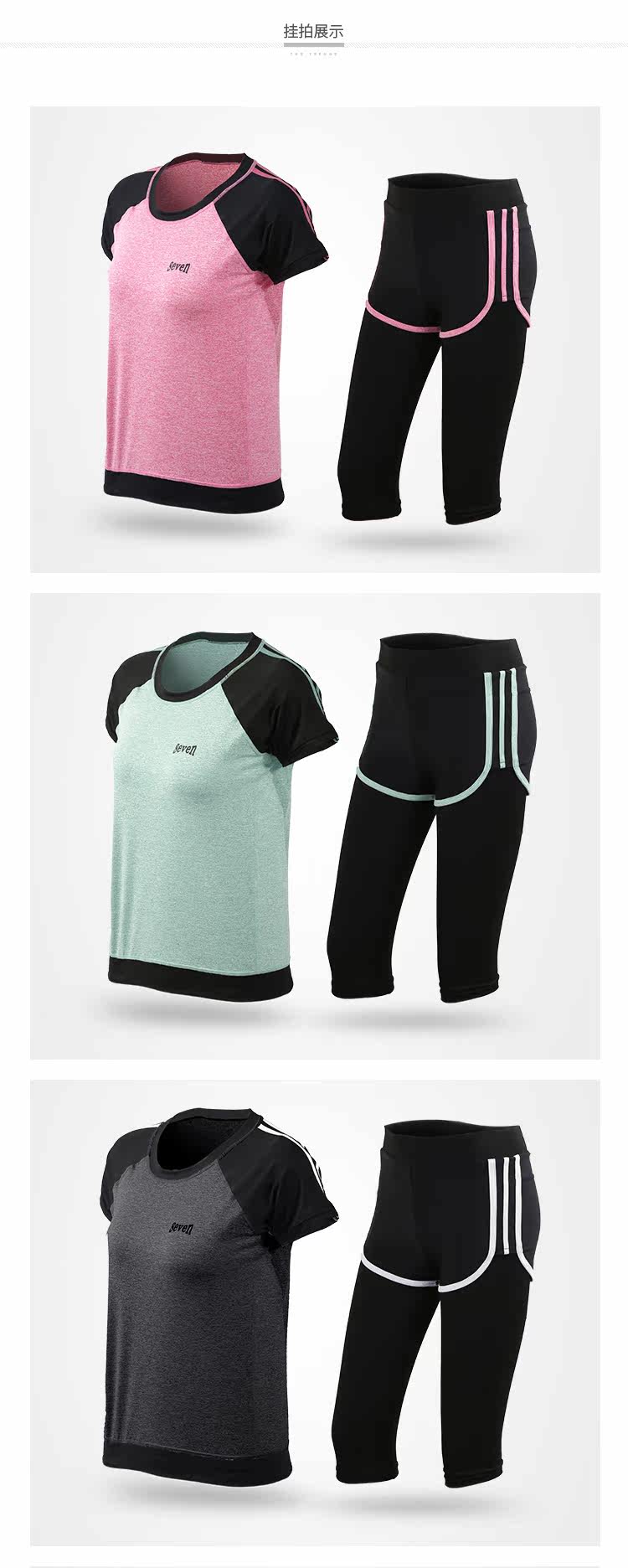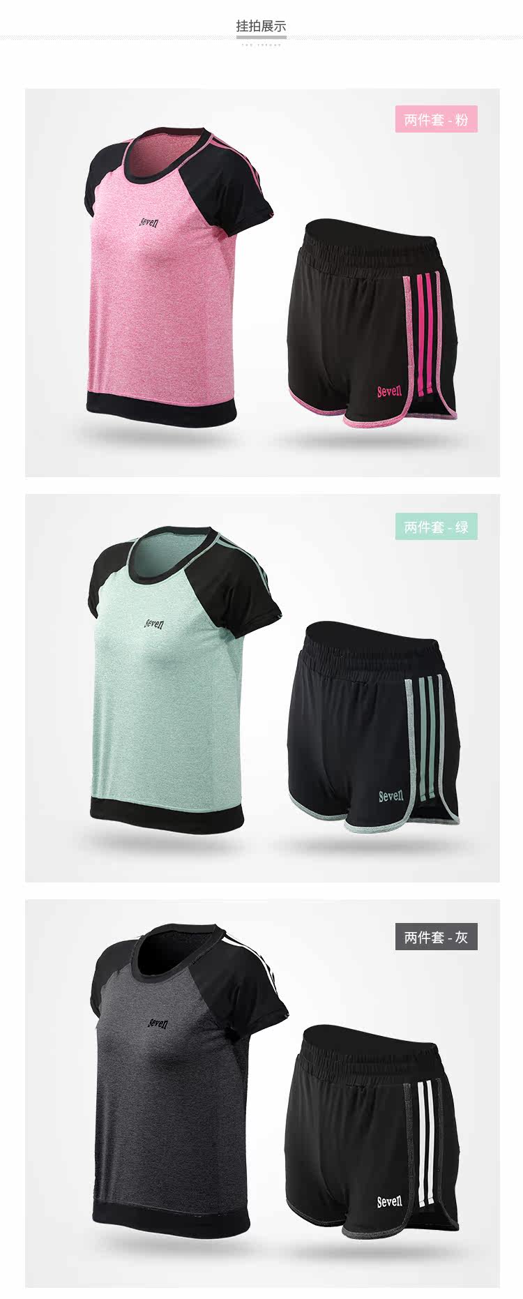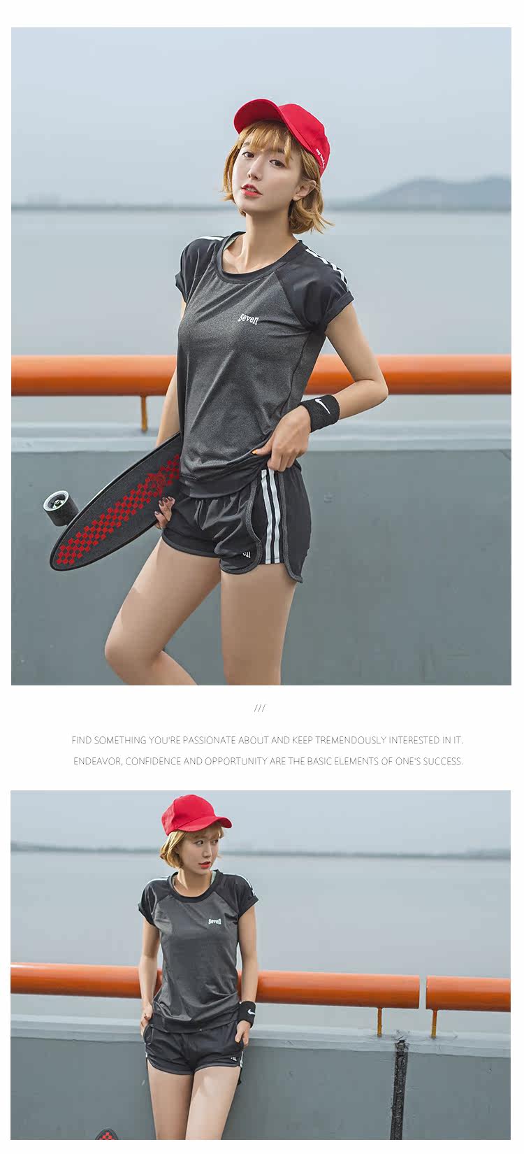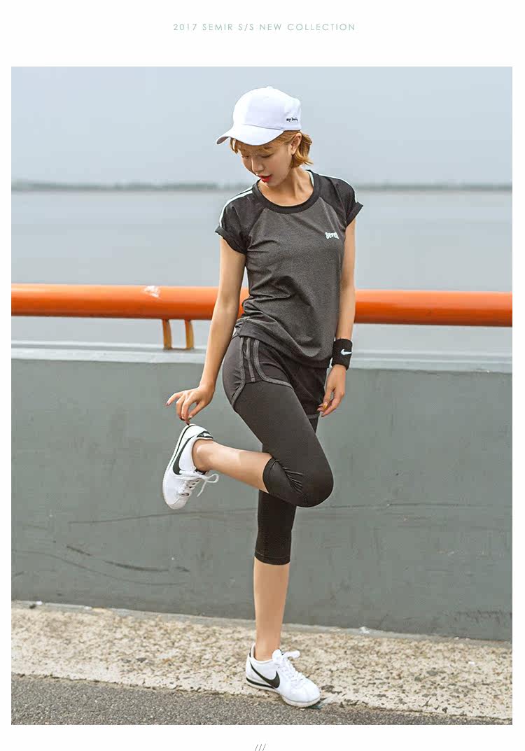 夏季瑜伽服健身服女宽松短袖速干衣健身房跑步运动服短裤三件套装