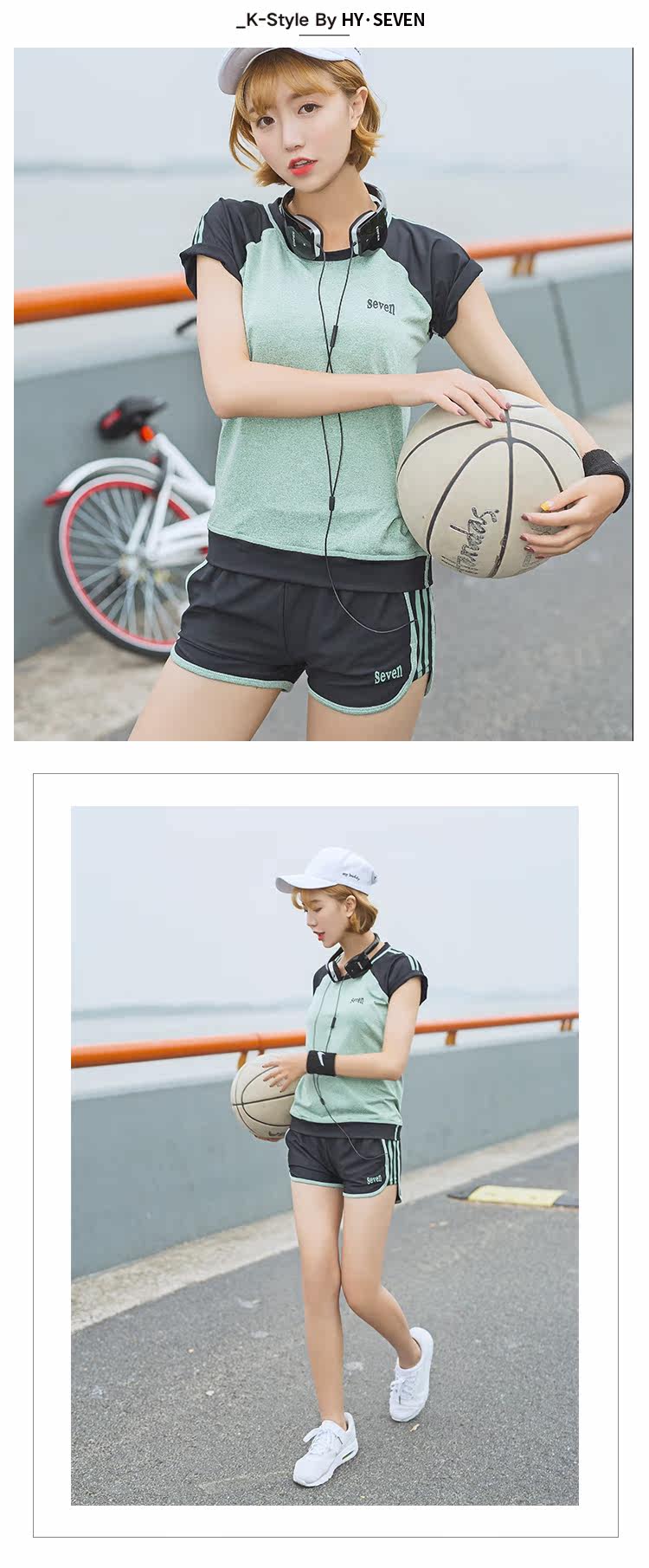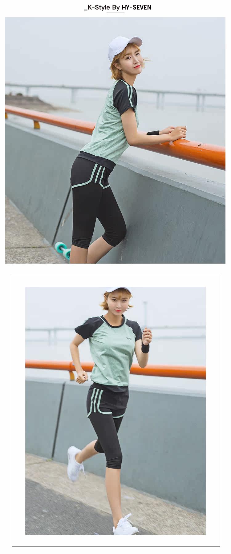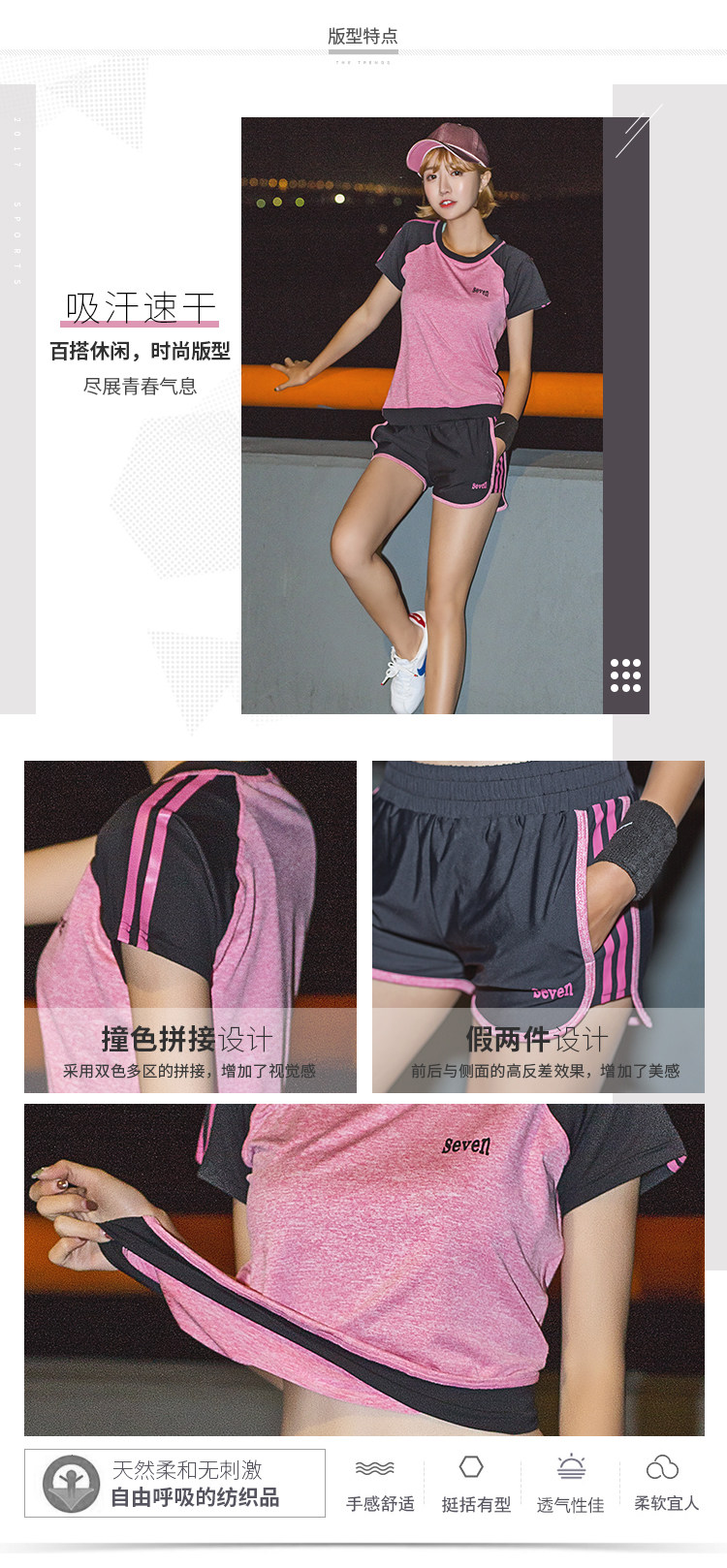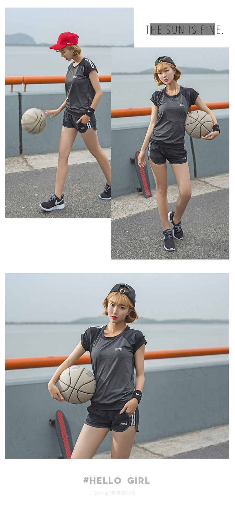 夏季瑜伽服健身服女宽松短袖速干衣健身房跑步运动服短裤三件套装
