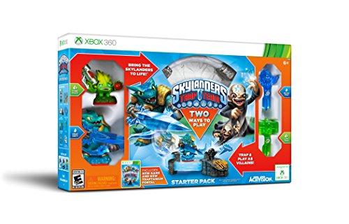 Starter Pack includes: 1-Video Game, 1-Traptanium Portal, 2-Skylanders Figures, 2-Traps, 1-Character Collector Poster, 2-Sticker Sheets with Secret Codes and 2-Trading Cards.