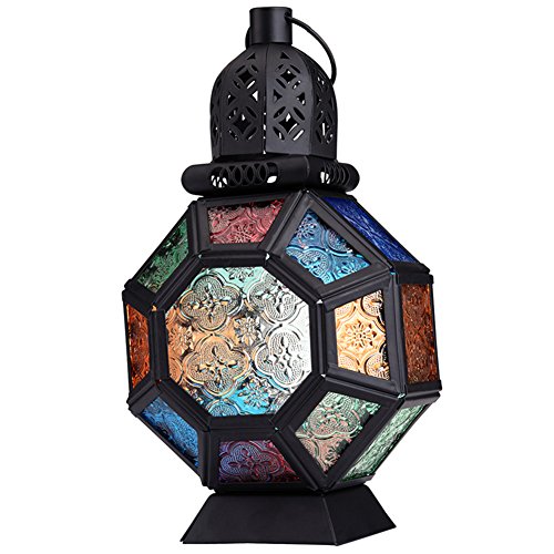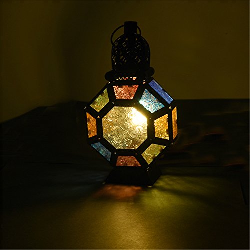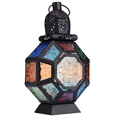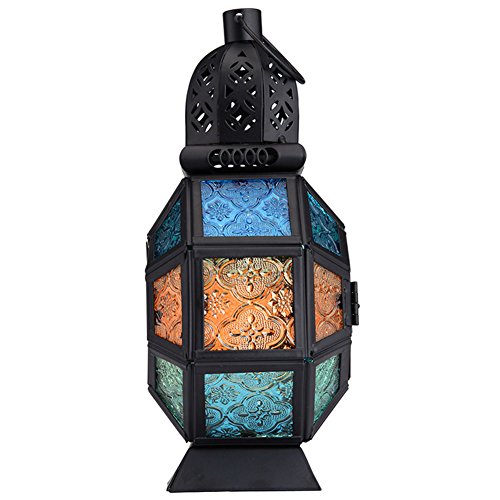 -. Binding : Kitchen -. Brand : Aihome -. Color : Black -. EAN : 0709054716003 -. Feature : Made from metal and glass / Size: Measures 10.63 * 5.90 * 4.72 in / Suitable for hanging or use as a freestanding lamp / Use with tea light candles or votive candles / Not just candlelight-This lantern adds multi color, pattern and an exotic global vibe to your home. -. IsAutographed : 0 -. Label : AIHOME -. Manufacturer : AIHOME -. ProductGroup : Home -. ProductTypeName : HOME -. Publisher : AIHOME -. Studio : AIHOME -. Title : AIHOME Moroccan Retro Style Candle Lantern Metal Stained Multi-colored Candlestick Tea Light Stand for Gifts Decor -. UPC : 709054716003