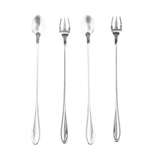 BXT Stainless Steel Mirror Polished Flatware Cutlery Set 2 Sets Long handle Mixing Stirring Tall Iced Tea Coffee Soda Cold Drink Fruit Juice Scoop Spoons & Fruit Forks 4 Pieces Tableware Drinking Sets