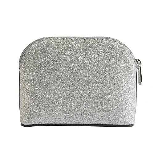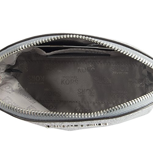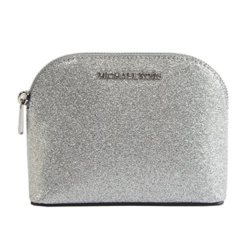 Michael Kors Glitter Leather Medium Cosmetic Case Travel Pouch Silver