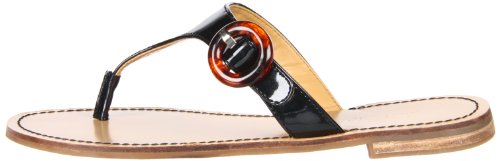- Feature : Elegant lines, a bold buckle detail, and a slender sole all lend a refined atmosphere to this architectural thong sandal.