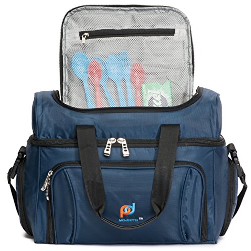 Mojecto Cooler Bag-12x10x6.5-Inch.Two Insulated Compartments, Heavy Duty Polyester, High Density Insulation (Hot or Cold), 2 Heat Sealed Removable Peva Liner, Many Pockets, Strong Double Zipper