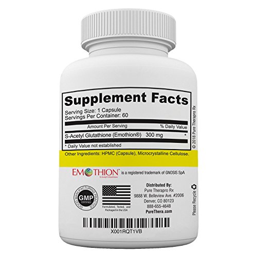 EACH CAPSULE Contains 300mg of S-Acetyl-Glutathione - 60 caps is a 2 month supply! Use of enteric coating further protects stability. Free of Magnesium Stearate! Manufactured in the USA in a GMP-certified facility, for guaranteed quality and potency.