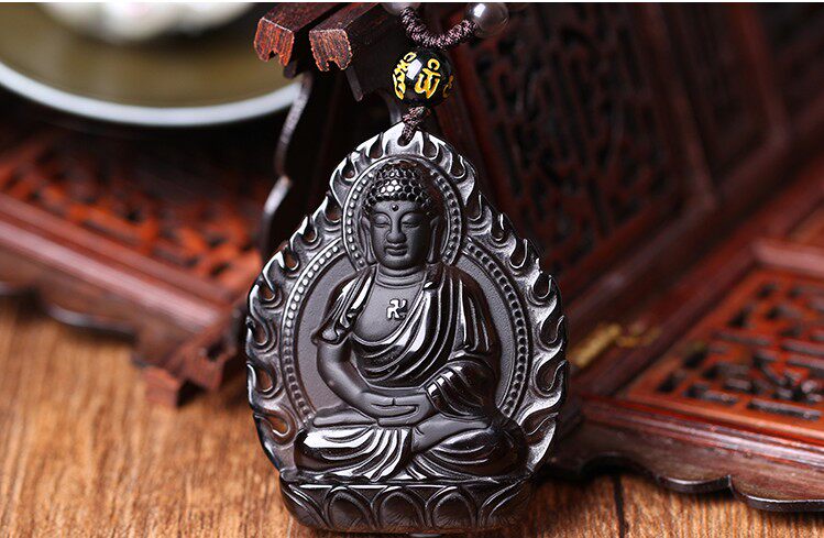 开光冰种黑曜石阿弥陀佛生肖属狗属猪本命佛守护神吊坠