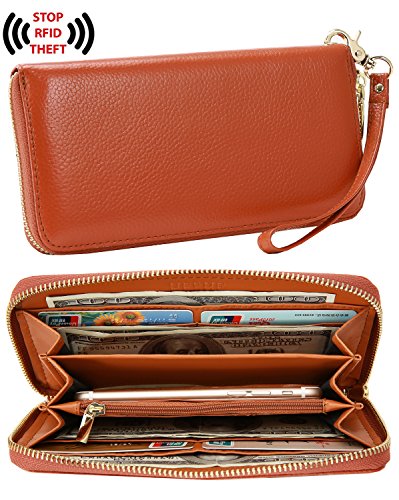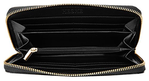 -. Title : Heshe Womens RFID Blocking Leather Long Zippered Around Wallet Clutch with Wrist Strap