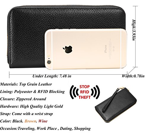 -. Feature : CLOSURE: - Zippered Around with a detachable Wrist Strap(The Drop of strap is 6.29IN). / HARDWARE & LINING: - High quality light gold hardware. Mercerized & RFID lining & Zippered around Micro fiber. / CAPACITY: - 8 credit card case slots.1 full length pockets, one of which is Zippered, also can carry coin.Designed to hold cash, cards and other little things; you can simply hold it on hand or put it in bag.Easily hold your Samsung Galaxy Note4 /I phone 7 Plus. / COLOR: - Black. Brown. Wine. Available 3 classic colors,suitable for any age(Teenage or Adult Female) and any occasion(Traveling, Work Place , Dating, Shopping.). It's Fashion, Vintage, Creative, is a very useful accessory brighten up your look, also as a gift. / SIZE INFORMATION: - (L)7.48 x (W)3.93x (H)0.78 in and the weight is about 0.45pounds