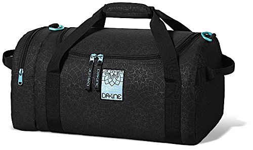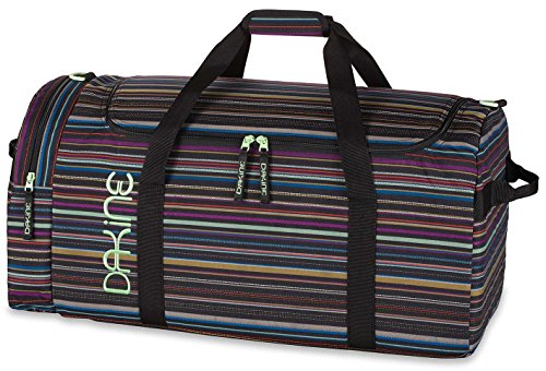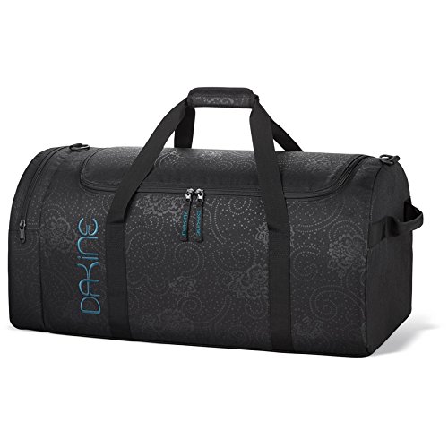 The Womens EQ 74L bag from Dakine was designed with women in mind. It includes a u-shaped opening for easy access, a zippered side pocket, and a removable padded shoulder strap. 4500 cubic inches of space 27 x 12.5 x 11.5.