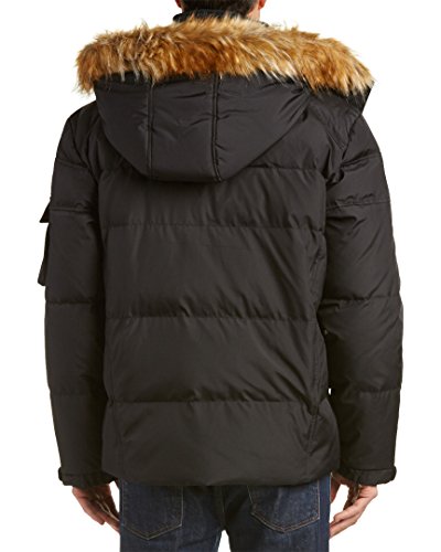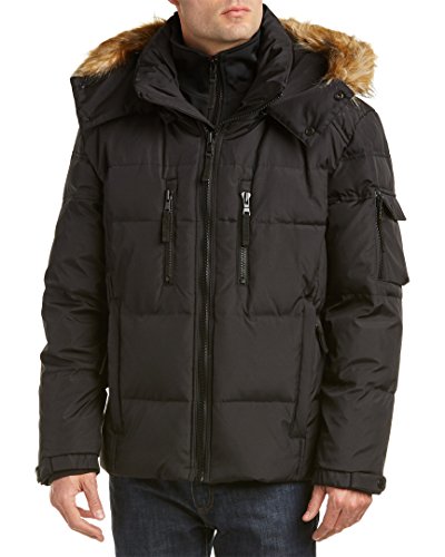 Studio : S13/NYC Men's Outerwear Publisher : S13/NYC Men's Outerwear Binding : Apparel Product Description 28.5' quilted microtech down puffer jacket with inset neoprene bib. The detachable hood has faux fur trim to protect from the elements. Adjustable drawcord waist keeps the cold air out. Fleece storm cuffs and fleece lined zipper pockets for added warmth and comfort. 0