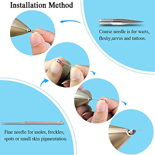 -. Feature : SKIN TAGS HELPER: Professional mole remover device come with 2 kinds of needles - coarse needle and fine needle. Suitable for different skin tags like tattoos moles freckle fleshy nevus pigment, make your skin smooth and clean. / UPGRADE VERSION: Herwiss mole removal pen built in 8 level strength adjustment for different skin tolerance. Convenient USB charging for protection longer service life. Working mode and battery level can be observed visually on LCD Display, helps you control the machine better. / SAFE&EFFECTIVE: Featured electric ion carbonation function for reliable treatment, which can instantly removal spot, no bleeding and feeling of electricity with voltage stability of upgrade chip, no side effects for medical cosmetic results. / EASY TO USE: Long press ON/OFF button for 3s to power on or shut down, short press ON/OFF button to switch the speed level for its level 1 to 8. Press the OUT button to start work. Lower level is used on spot and freckle. Strong level is used on mole and skin tags. / RISK-FREE PURCHASE: For your optimum satisfaction, 30 Days money back guarantee and 12 month manufacturer's warranty would be offered! Package includes: 1 mole removal pen, 11 needles, 1 USB charging cable and 1 manual. Try it RISK FREE!