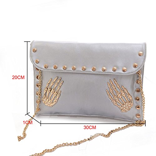 Product Description This is a perfect bag for going out from the park to the plane. This bag features skull and rivet design with high quality material,make you more fashion and chic. It will make you very eye-catching. This Chic bag is the perfect way to express your style in a modern way. This bag is fashionable as well as functional. You can wear it and keep your personal belongings in it like I.D., keys, credit card, cash, cell phone, lip gloss,etc. The bright neon color of this bag will help you stand out from the crowd and make it easy for your friends to spot you when there are a lot of people around. 0