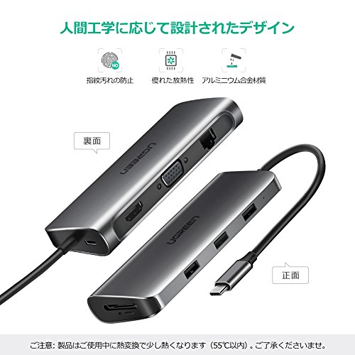 スリムでコンパクト、持ち運びも便利!アルミニウム合金製、優れた放熱性を持ち、ハブ動作する場合、充電する場合、HDMIとVGAを接続する場合、ハブ本体は熱くなる状況は正常です(10℃-50℃)。製品内部に多重保護システムを内蔵しており、安心してご使用頂けます。