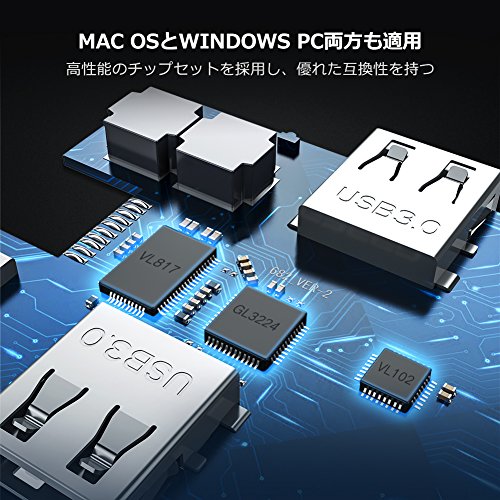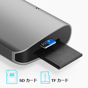 1000Mbps対応 ギガビット 有線LAN RJ45ポート経由でルータに接続して、無線よりもっと速く安定して、良いゲームセッション、流動的なビデオ、および作業目的を実現します。 対応システム:Mac OS, Windows 10(ドライバ不要)、Windows 7/8/8.1(ドライバ必要) ご注意:PC端末から本製品を抜いた後、ネットワークに干渉しないようにLANケーブルも抜いてください。 | USB3.0ハブ 3ポート拡張 USB-Cポートを3つのUSB 3.0ポートに変換して、外付けハードドライブ、USBメモリ、マウス、キーボード、USBヘッドフォン、またはその他の標準USBデバイスなど同時に多くの機器を接続できます。 最大5Gbpsのデータ転送により、数秒でHDムービーの転送が可能です。(USB2.0/1.1互換性あり)。 | SD TF カードリーダー追加 SD/TFスロット同時に読み込みや書き込み可能、多彩なメディア間にデータ転送を実現します。 SDスロット: SDXC, SDHC, SD, Extreme I III SD, Ultra II SD, MMC, RS-MMC Micro SD/TFスロット: Micro SD, TF, Micro SDXC, Micro SDHC, UHS-I |