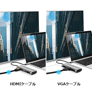 HDMIポートは最大4K(3840*2160P@30Hz)、VGAポートは1920*1080P/60HZのデバイスとモニターに対応。