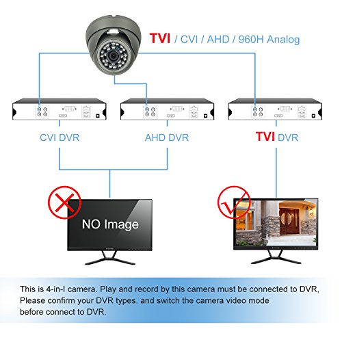 4 in 1 Security Dome Camera: This camera have 4 mode for video output: 1080p AHD, 1080P CVI, 1080P HVI and 960H