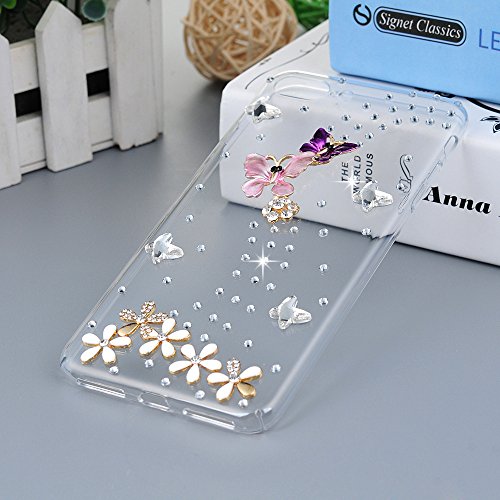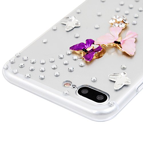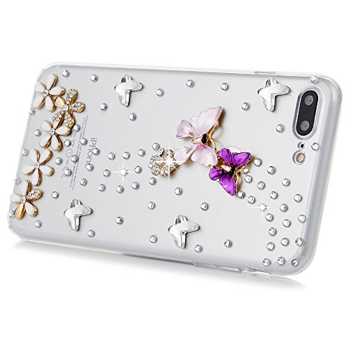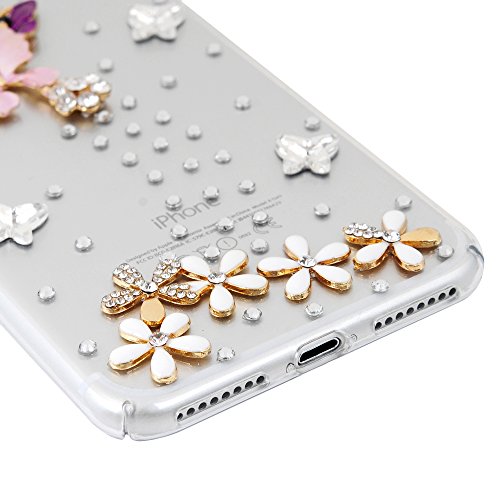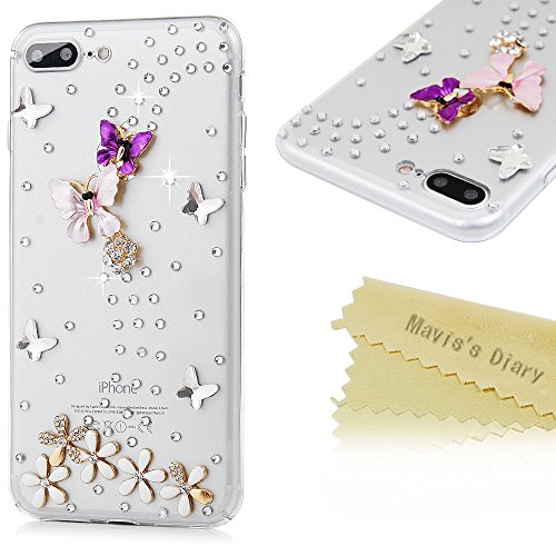 iPhone 7 Plus Case (5.5 inch) - Mavis's Diary 3D Handmade Bling Diamonds Colorful Butterfly with Flowers Lovely Glitter Rhinestone Gems Sparkle Crystal Full Around Protective Clear Hard PC Cover