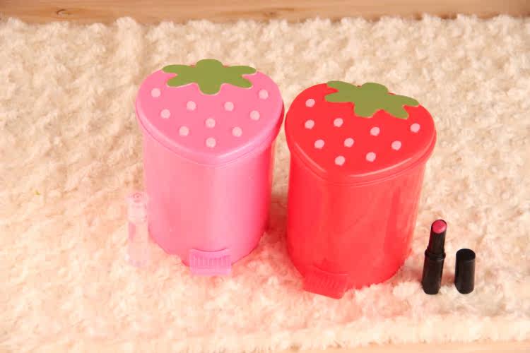 (买1送1)可爱草莓卡通垃圾桶 翻盖桌面垃圾桶 收纳桶 超萌迷你小垃圾桶