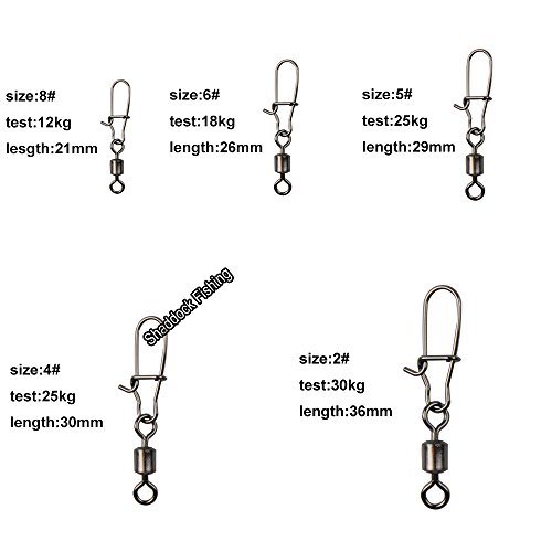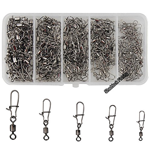 Shaddock Fishing 210pieces/box Fishing Swivel Snap Connectors Size 2 4 5 6 8 High-strength Fishing Rolling Swivels with Nice Snaps Fishing Tackle Kit (100% Copper+Stainless Steel)