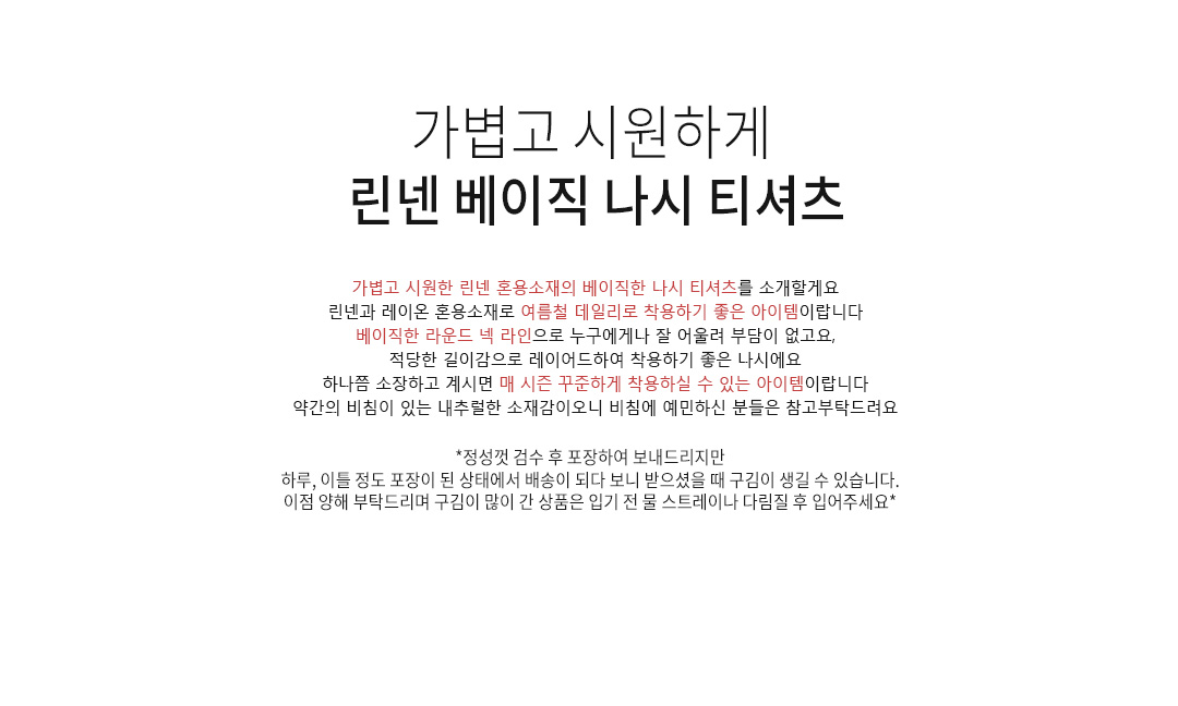 | 소재(Material) | 린넨(linen/)55%+레이온(rayon/)45% | |