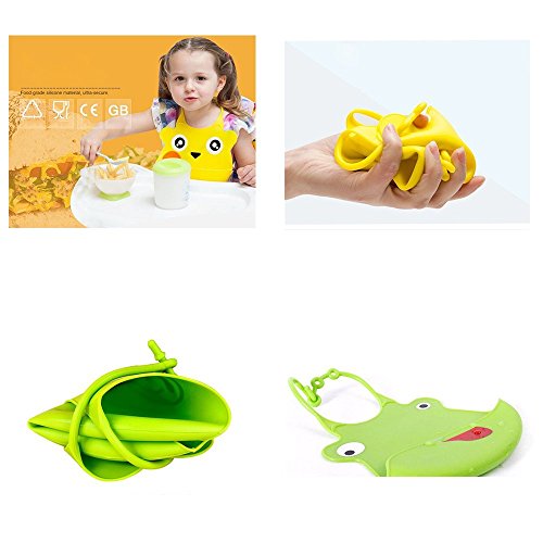 - Feature : Foldable with simple cow-pattern design / The soft silicone baby bib is adjustable;very comfortable for kid to wear / Directly catch drops of food with keep clothes clean. / Help your beloved kid to create a good dining environment / Non-toxic safe and durable material